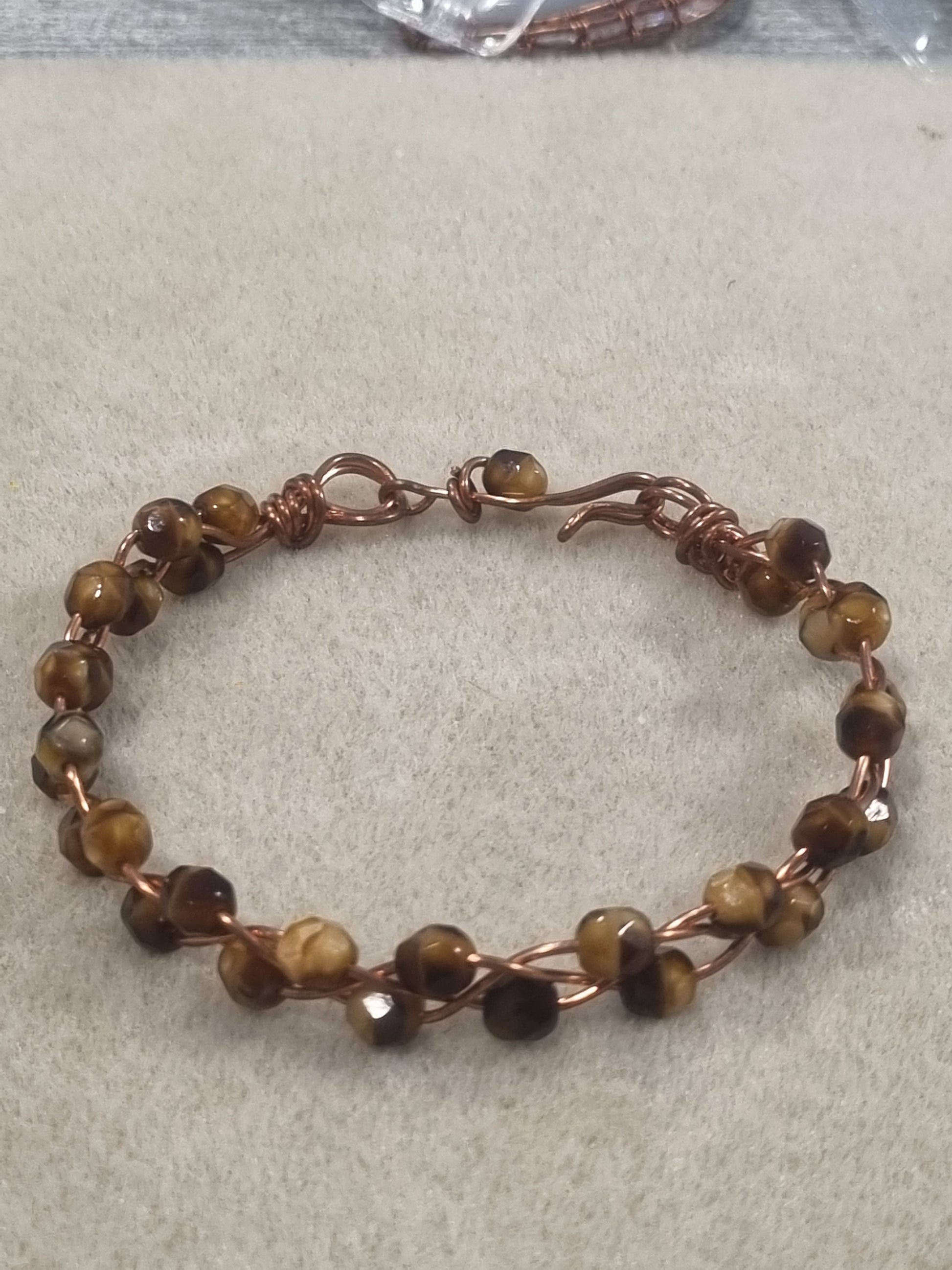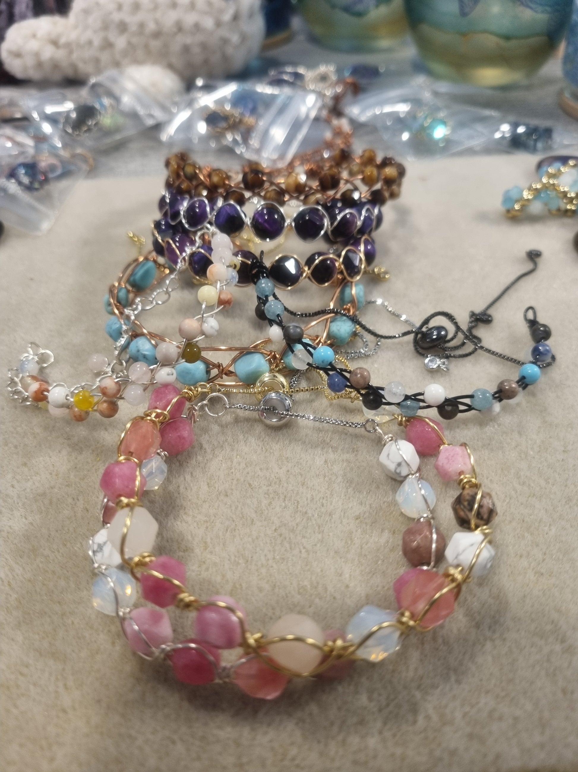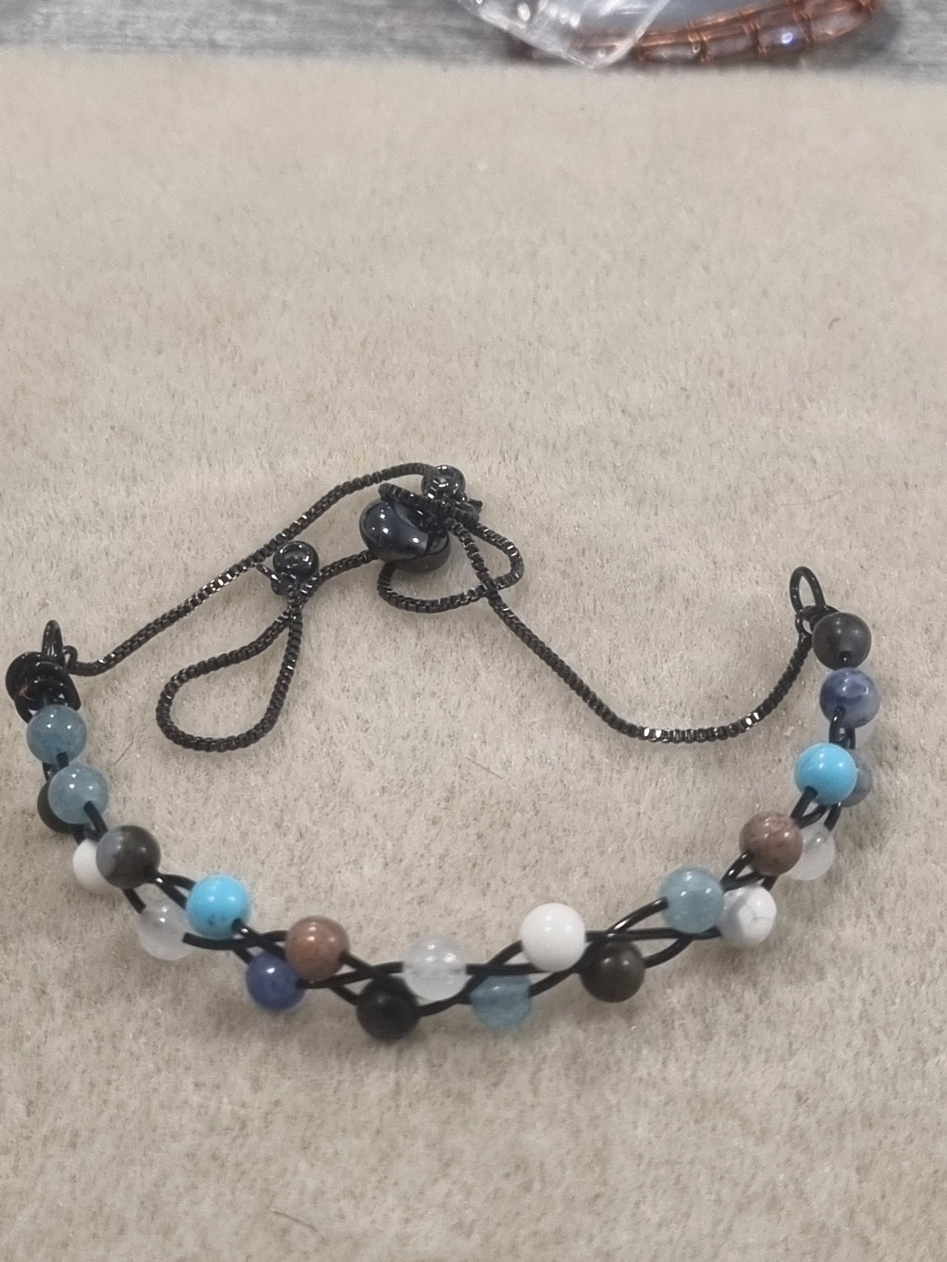Adjustable braided bangles. Wire wrapped and braided with natural stones.
