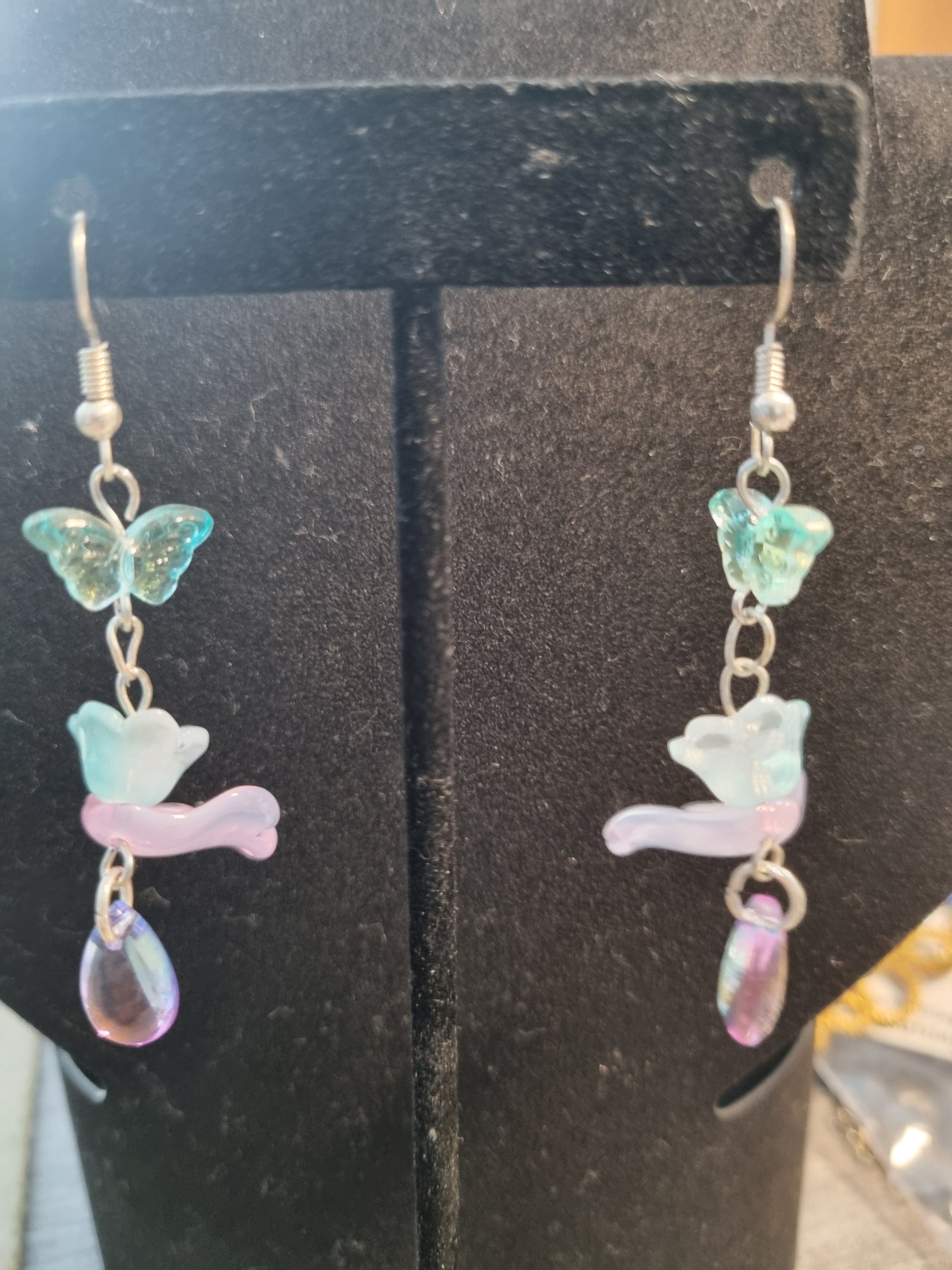 2.5" long. Glass and acrylic beads.