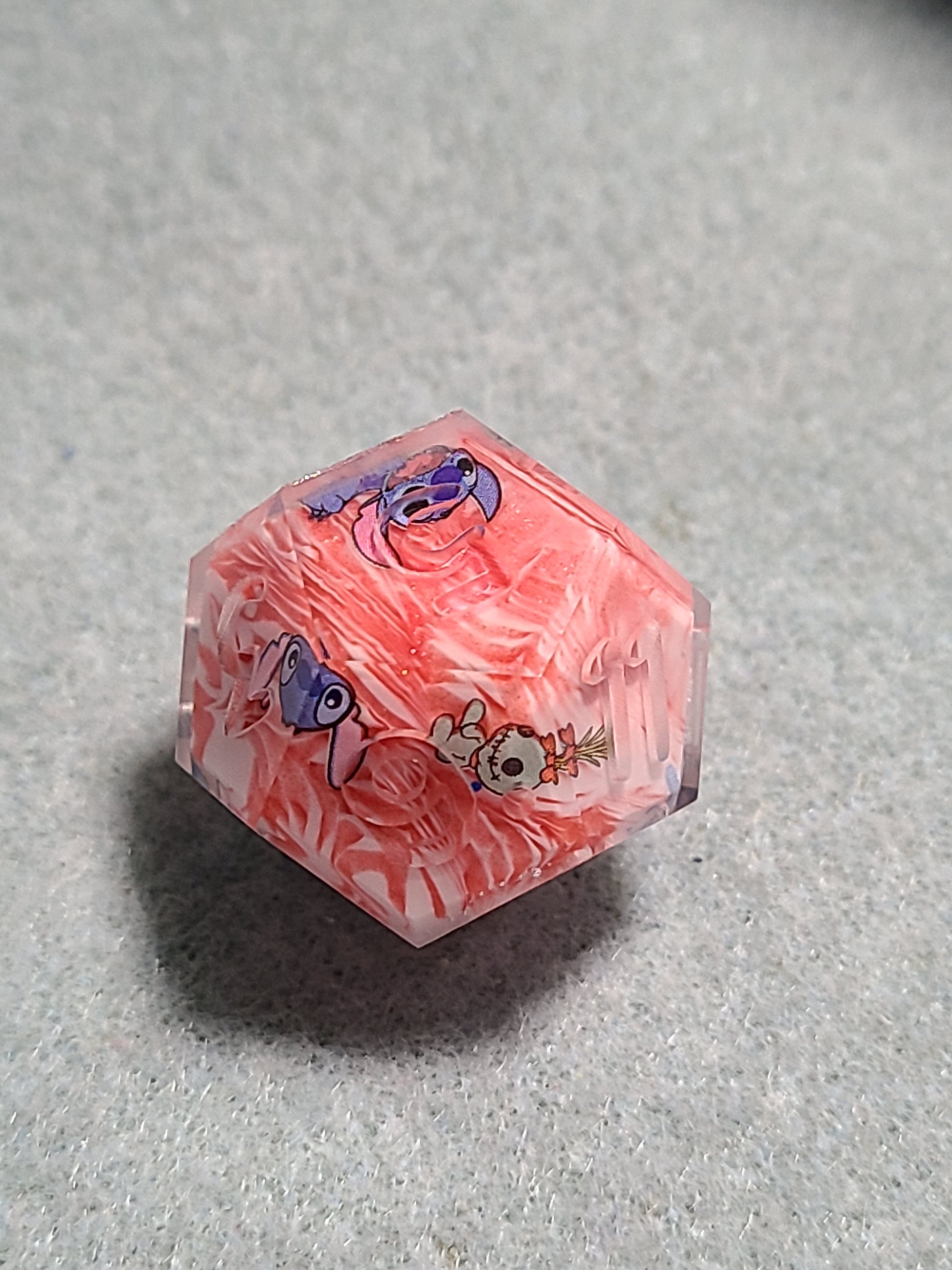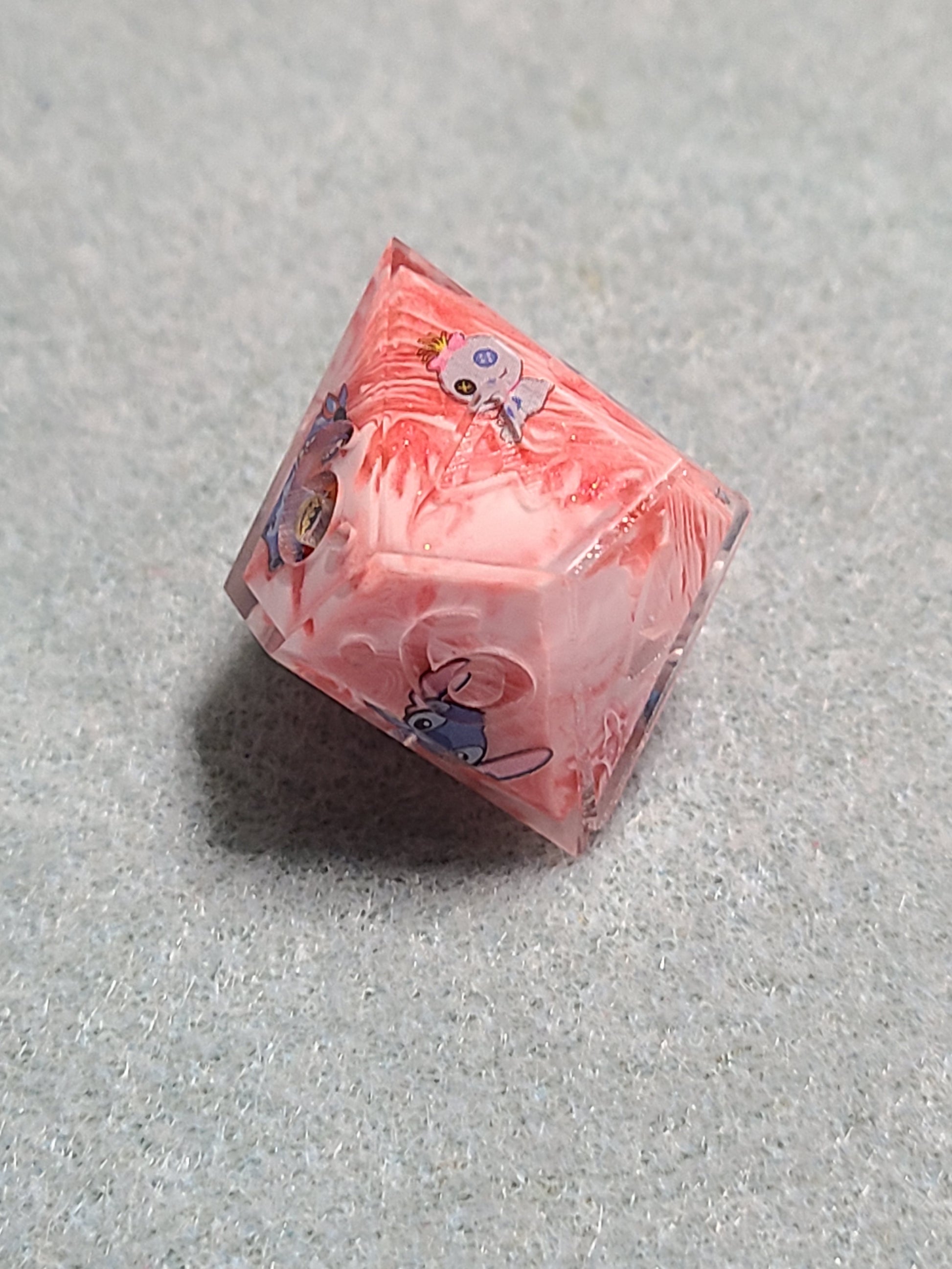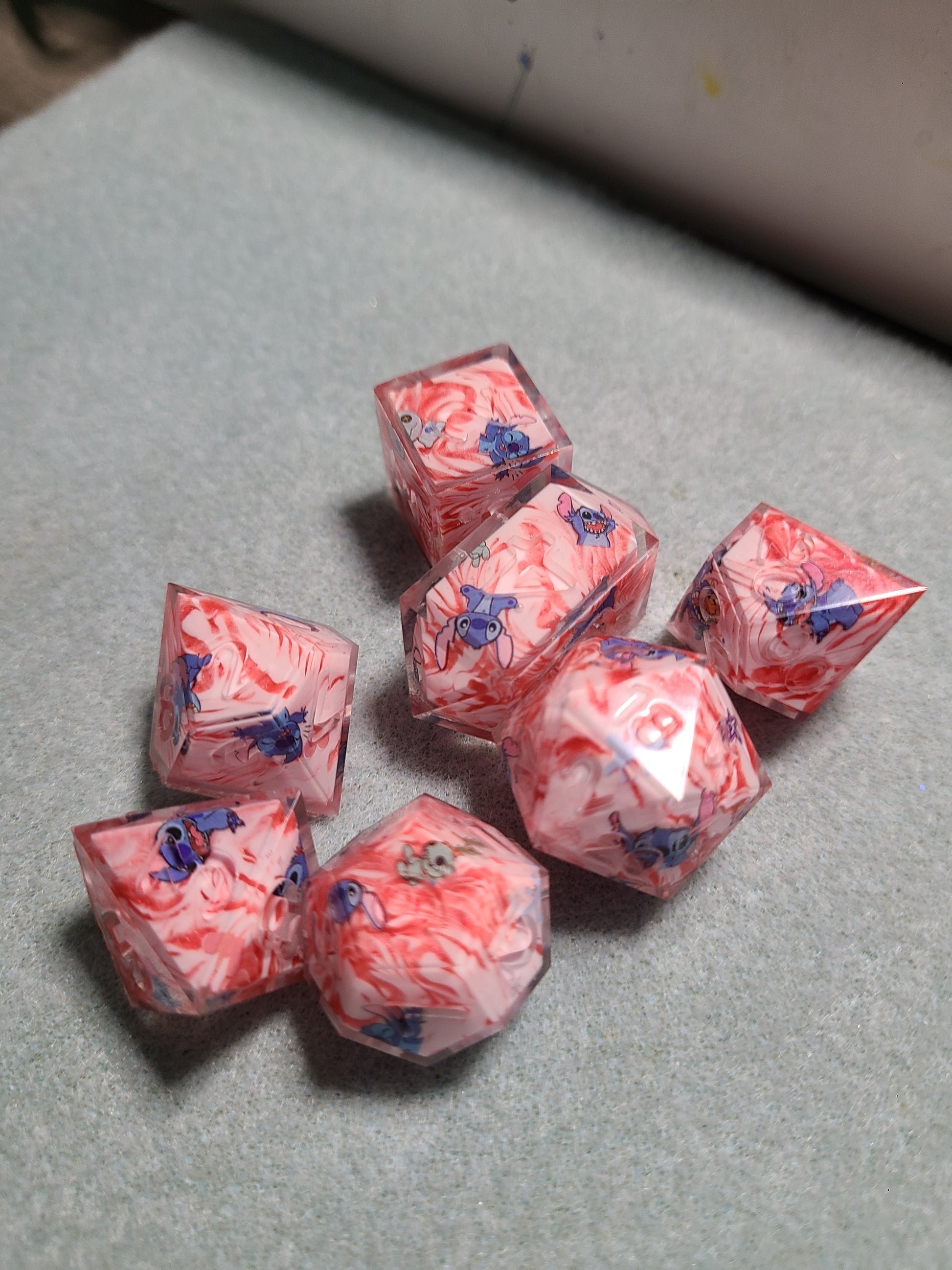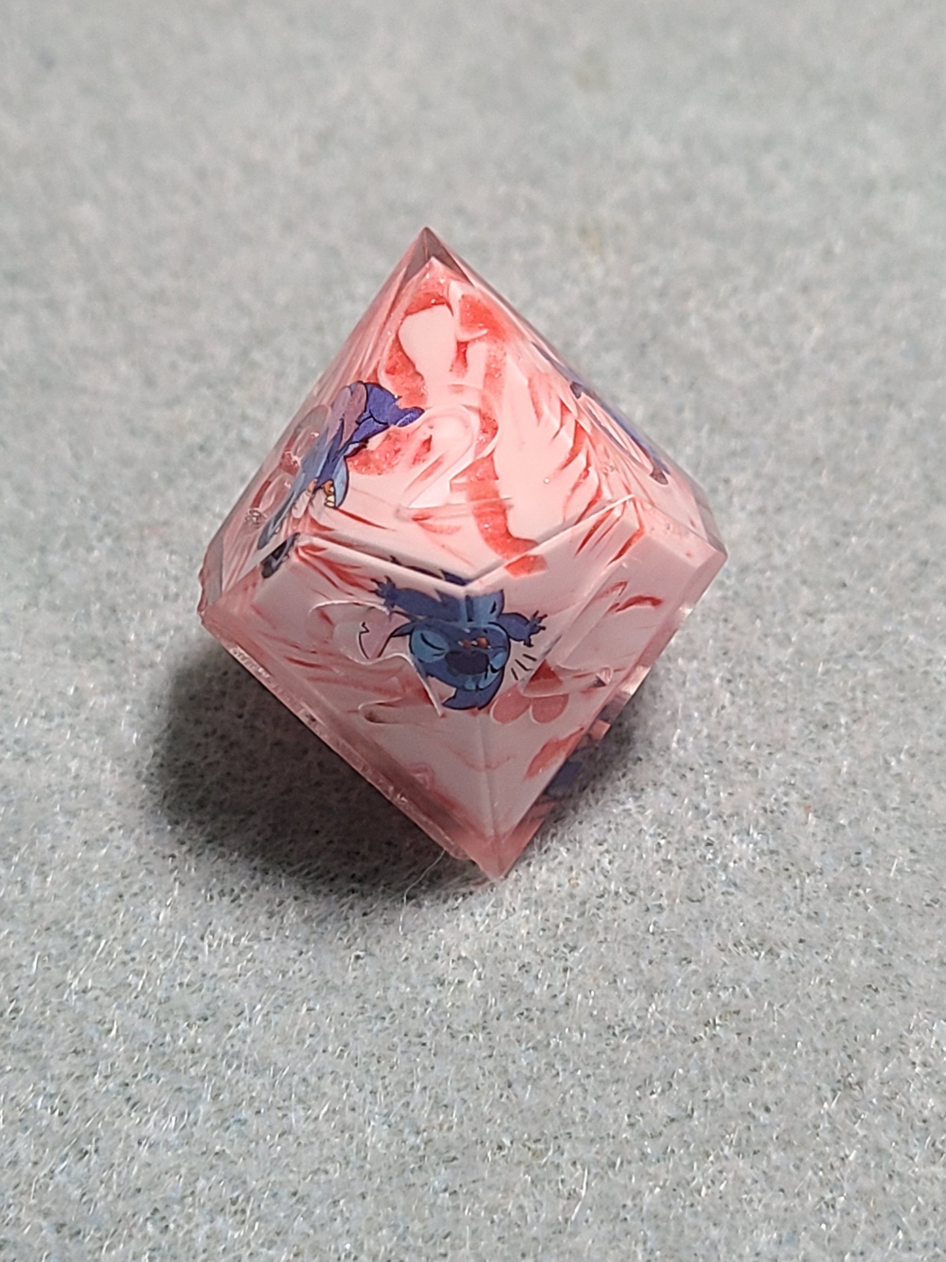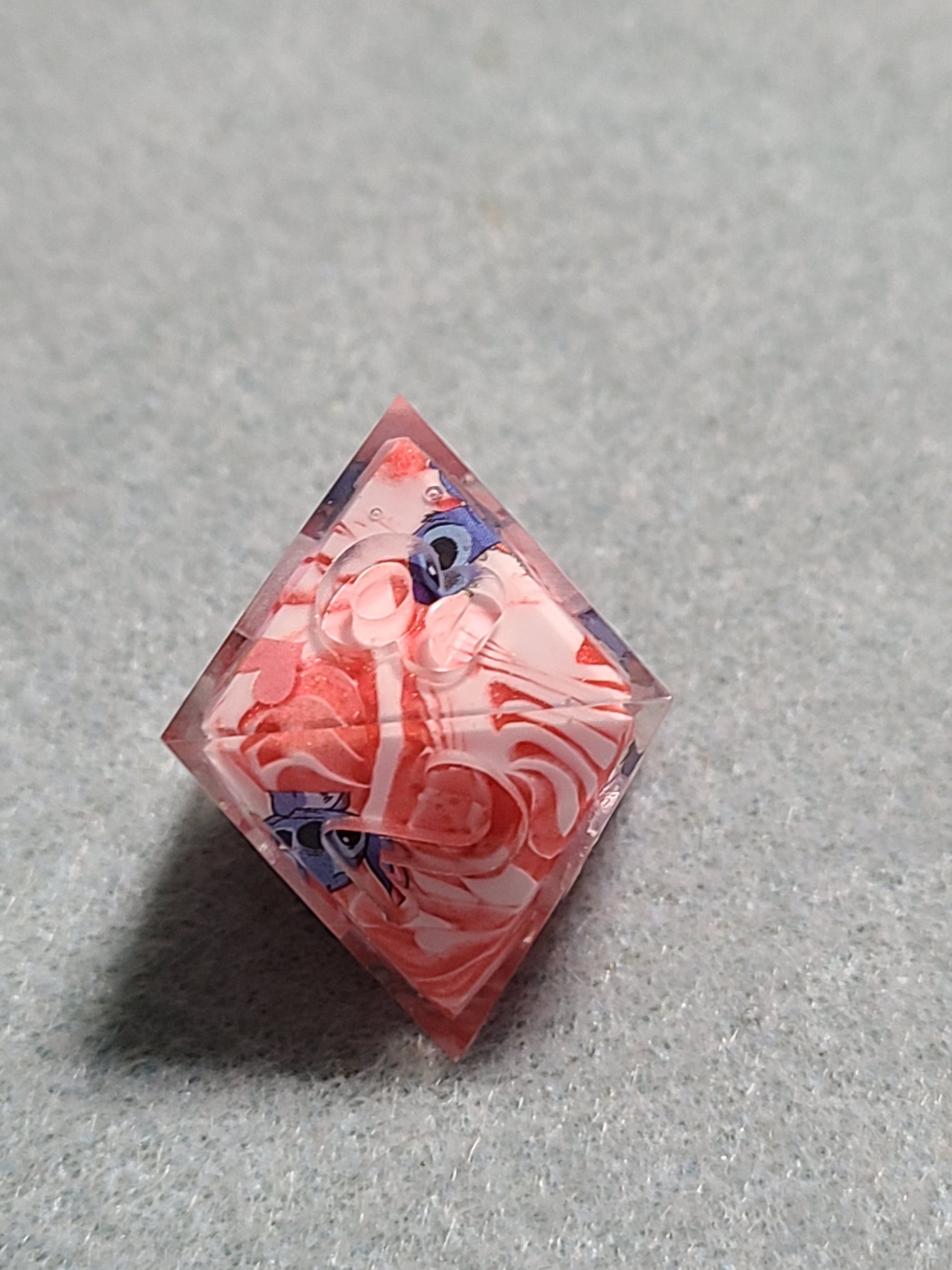 These have dice blanks done with a 2 color pour of redand white. Then I decorated with stitch nail stickers and recast with their numbers.