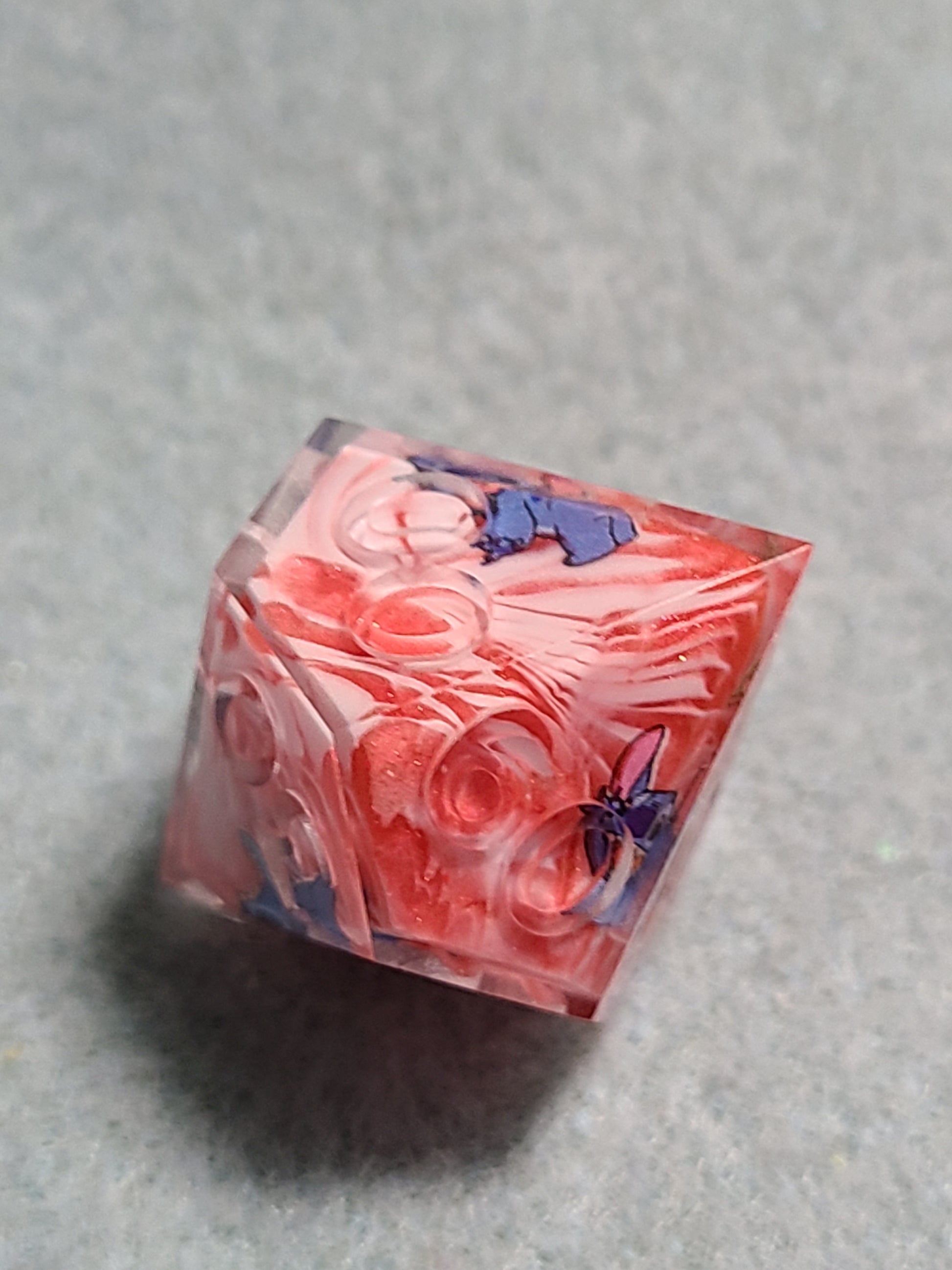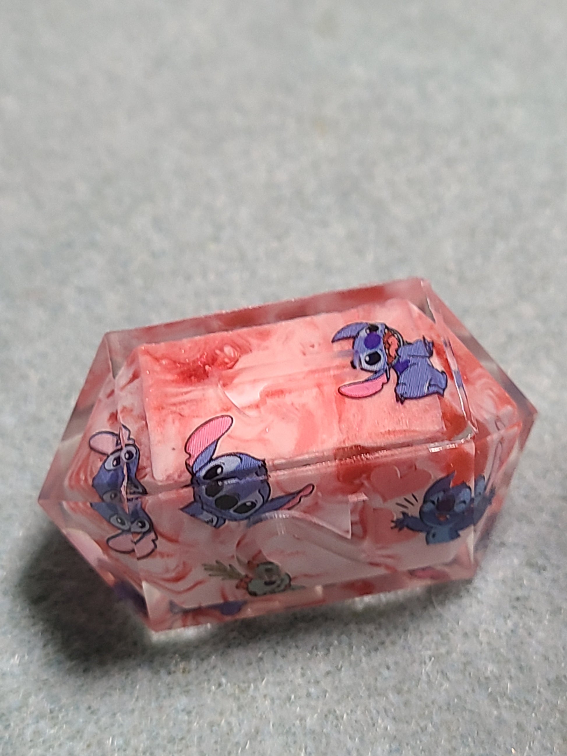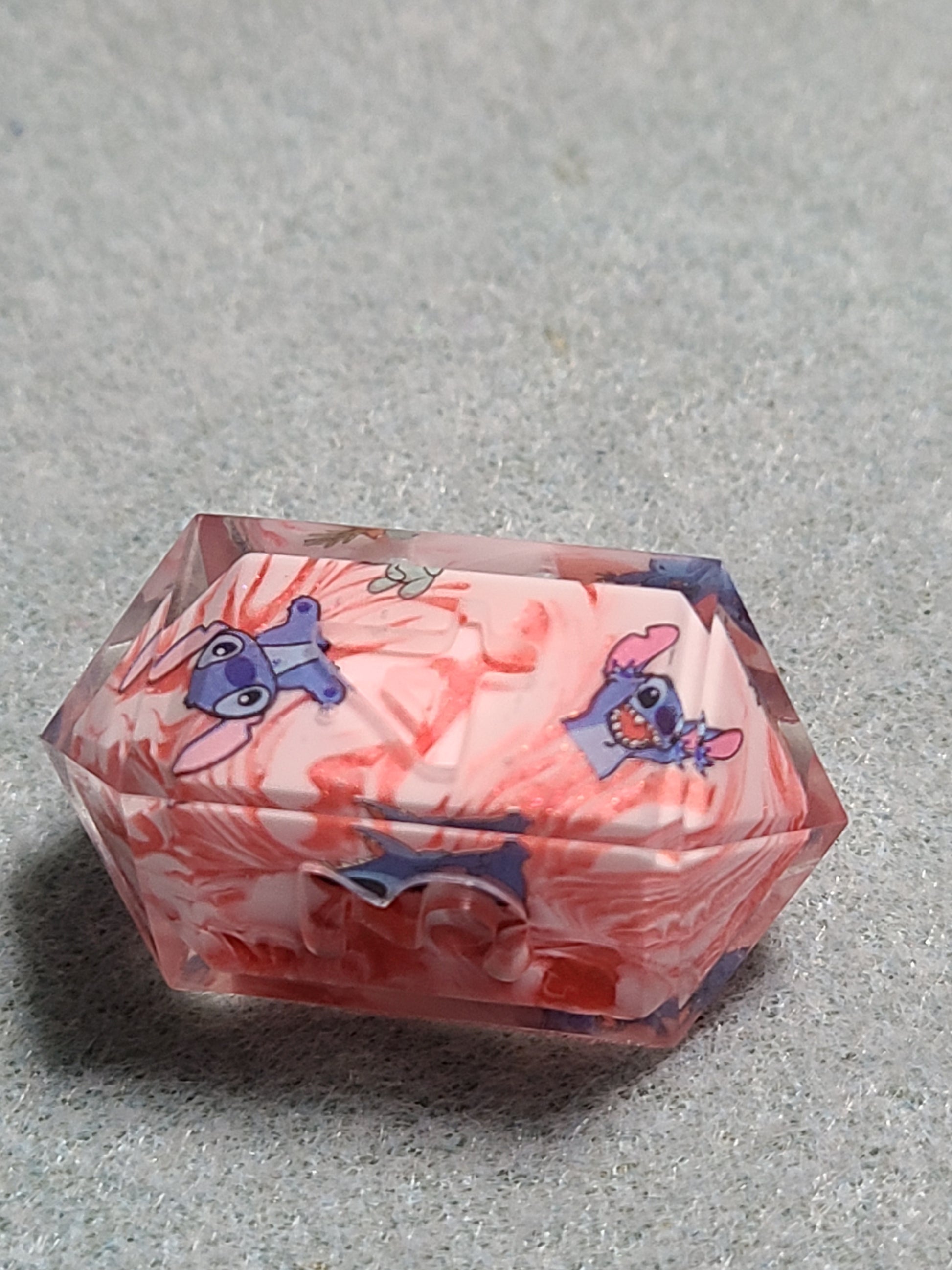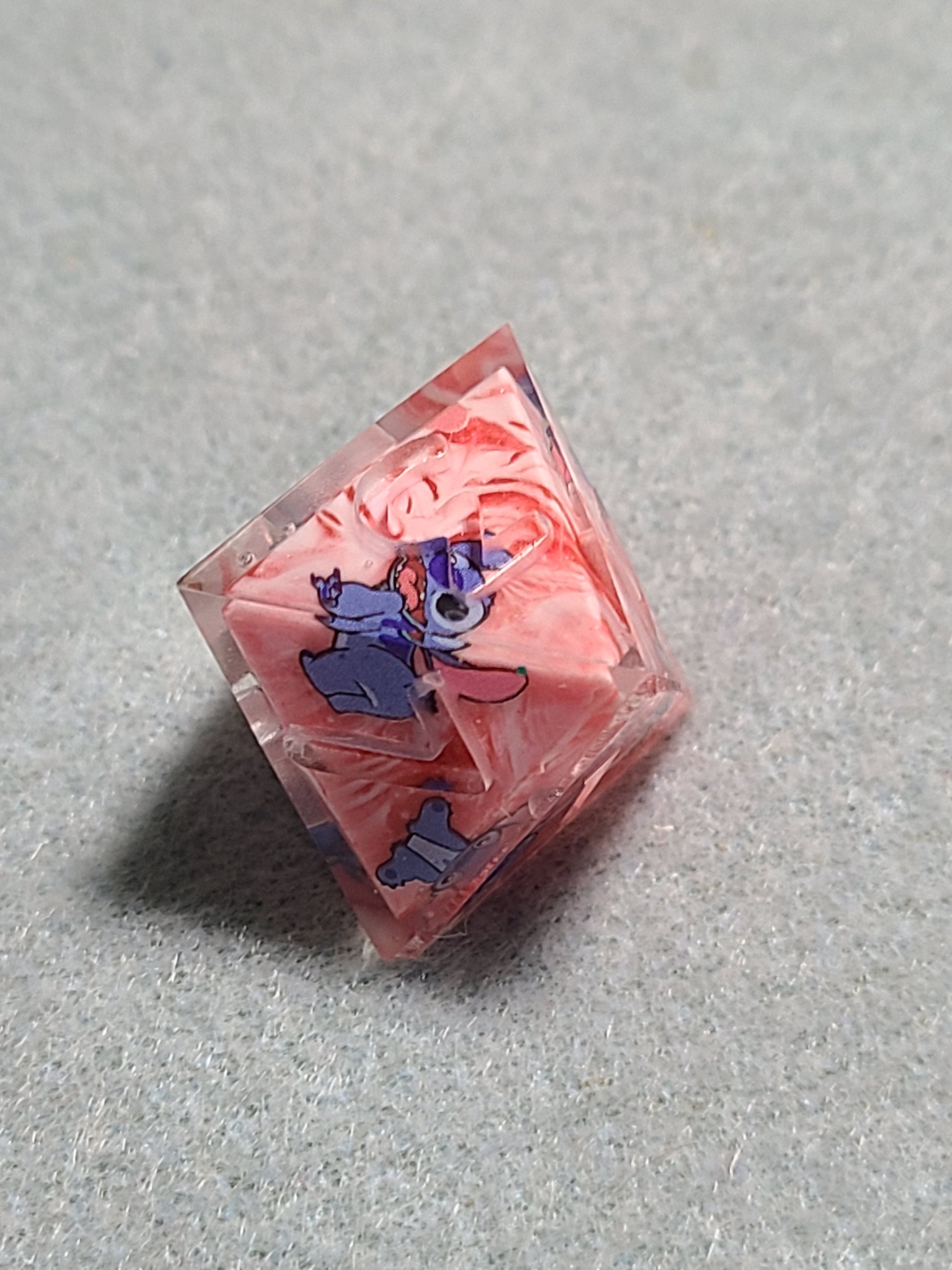 These have dice blanks done with a 2 color pour of redand white. Then I decorated with stitch nail stickers and recast with their numbers.