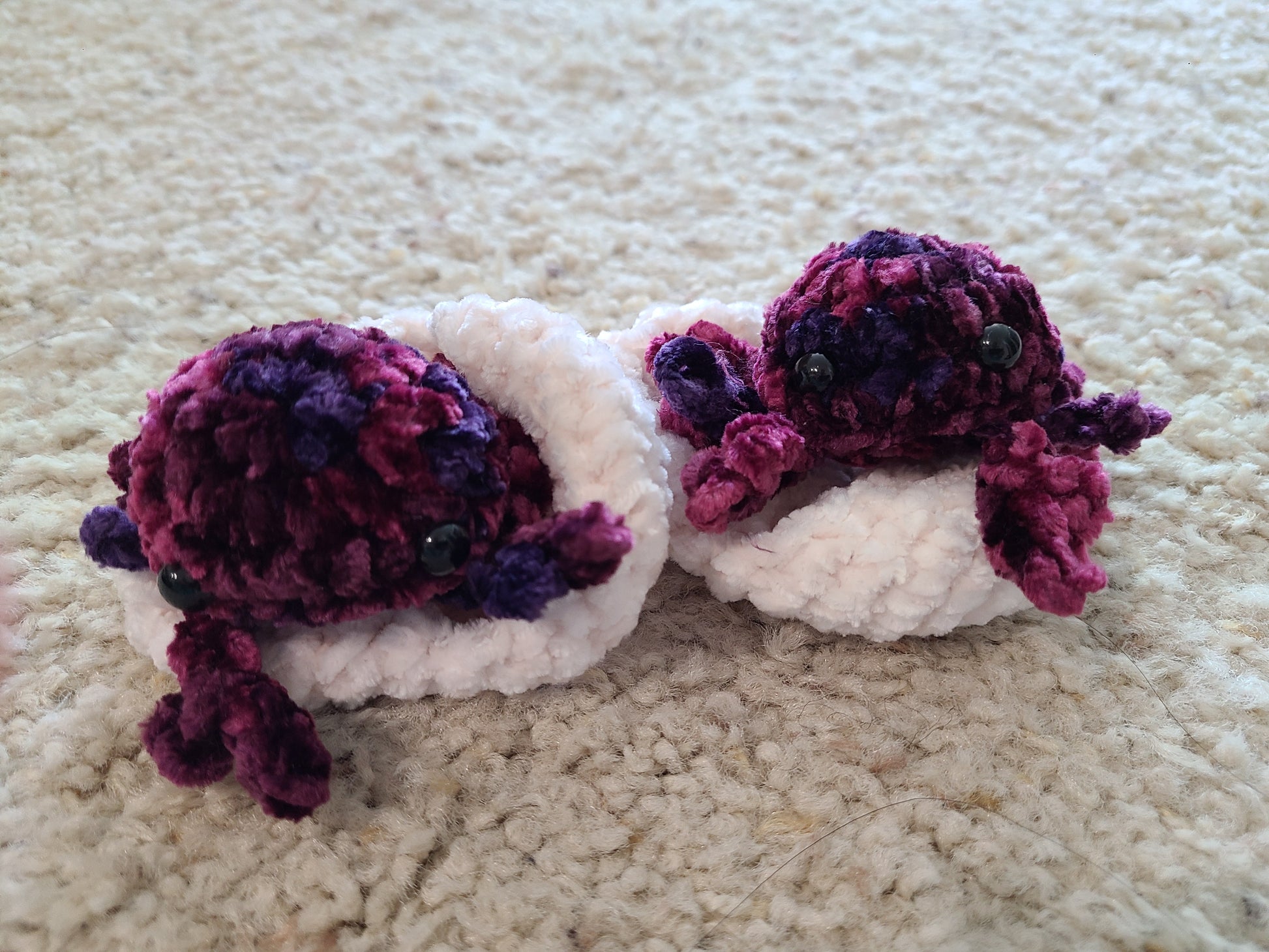 These crabs will pinch into your life to send you love and hugs. Momma crab is pregnant with 2 babies! The mommy crab comes with 2 babies in their eggshells. These babies fit inside their eggs and 2 of them fit inside the mom for safekeeping.