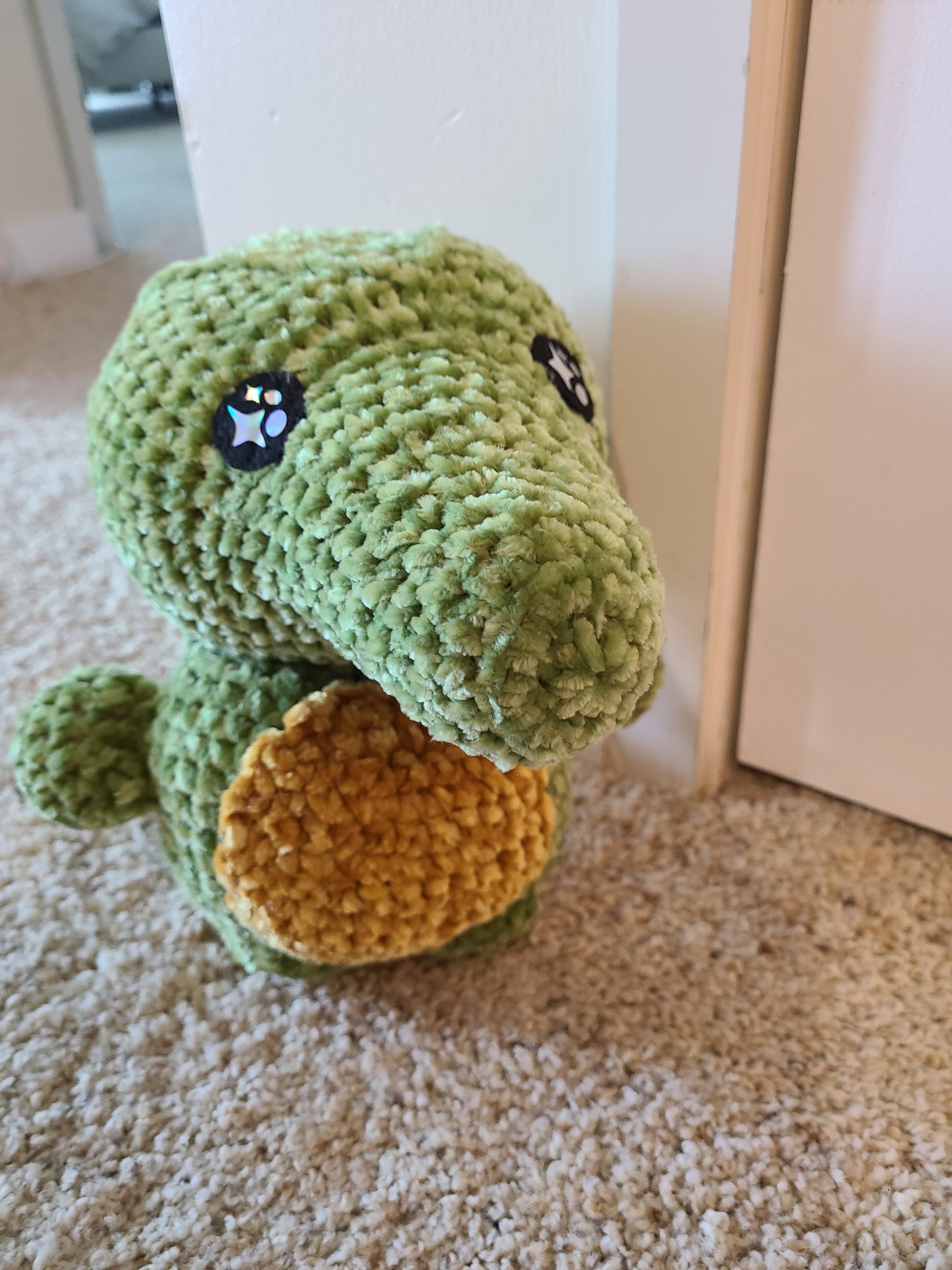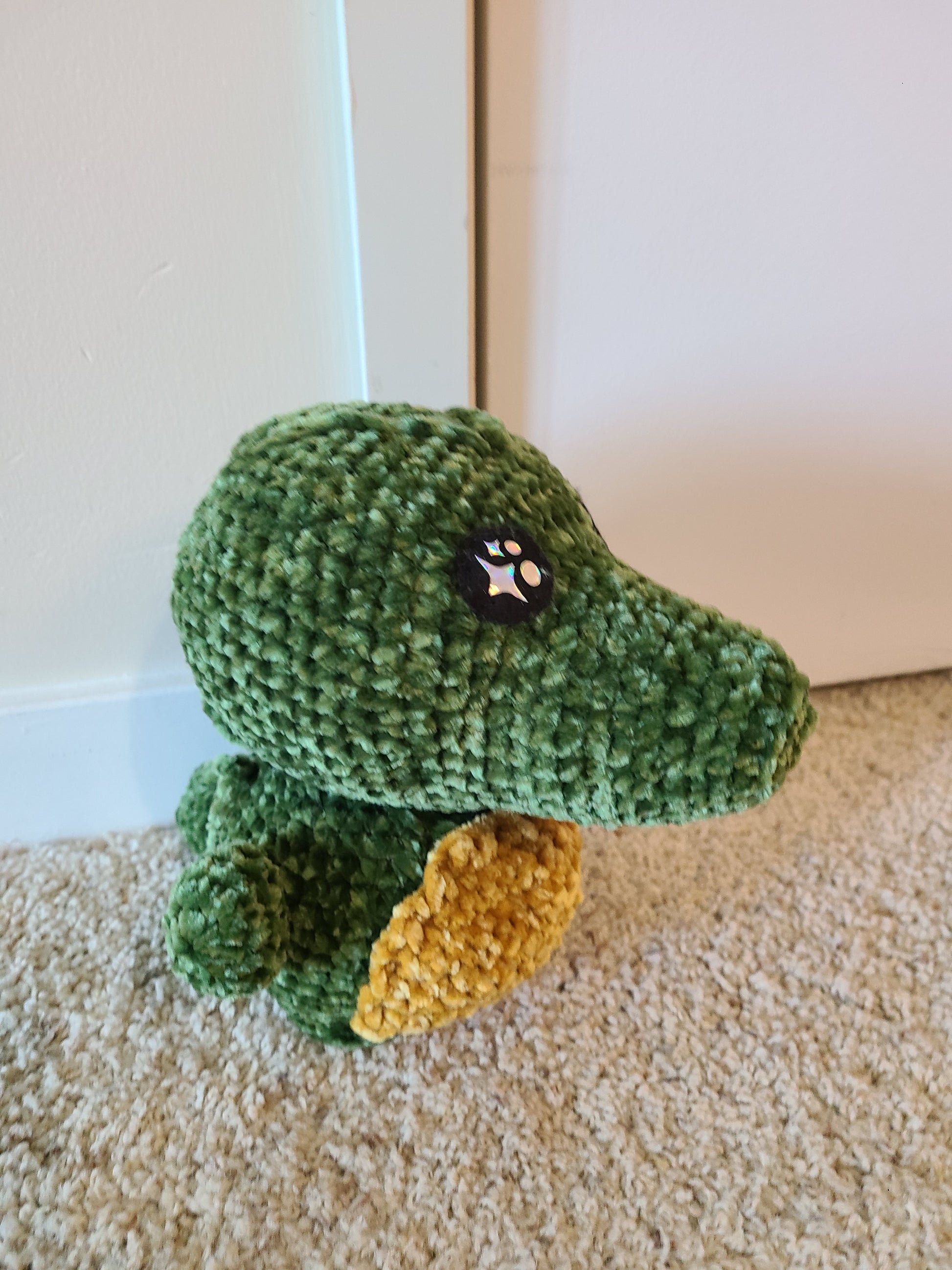 This crocodile is made of soft velvet yarn.
