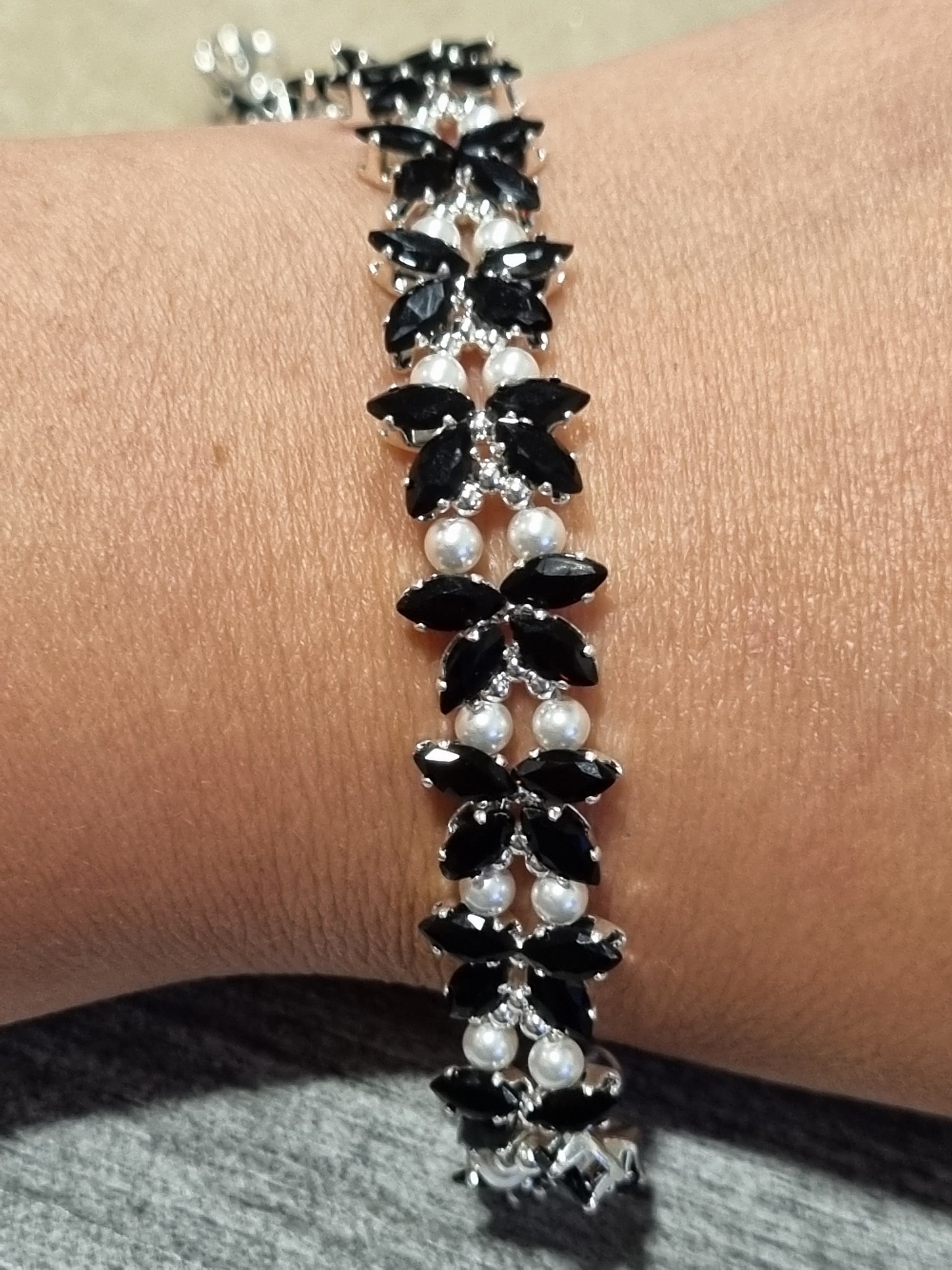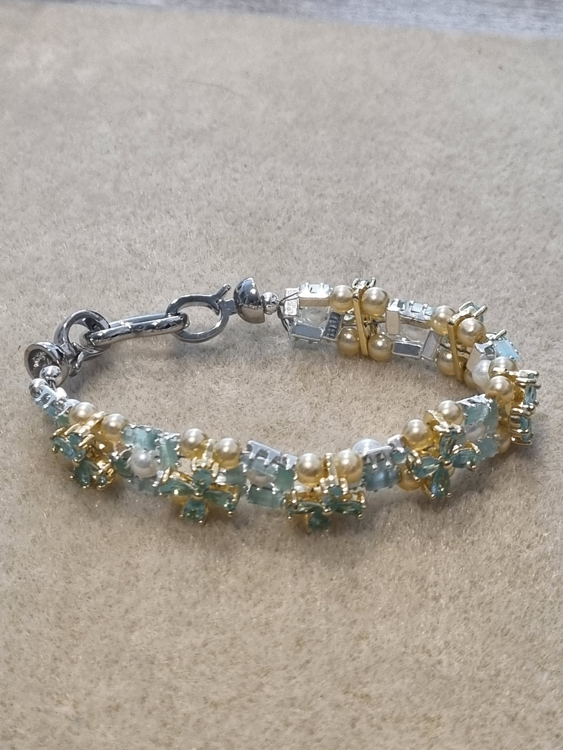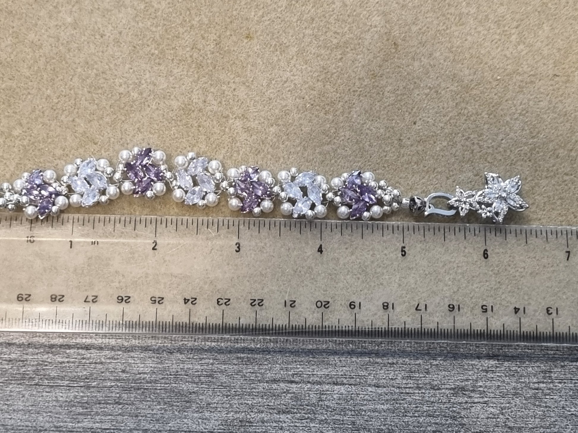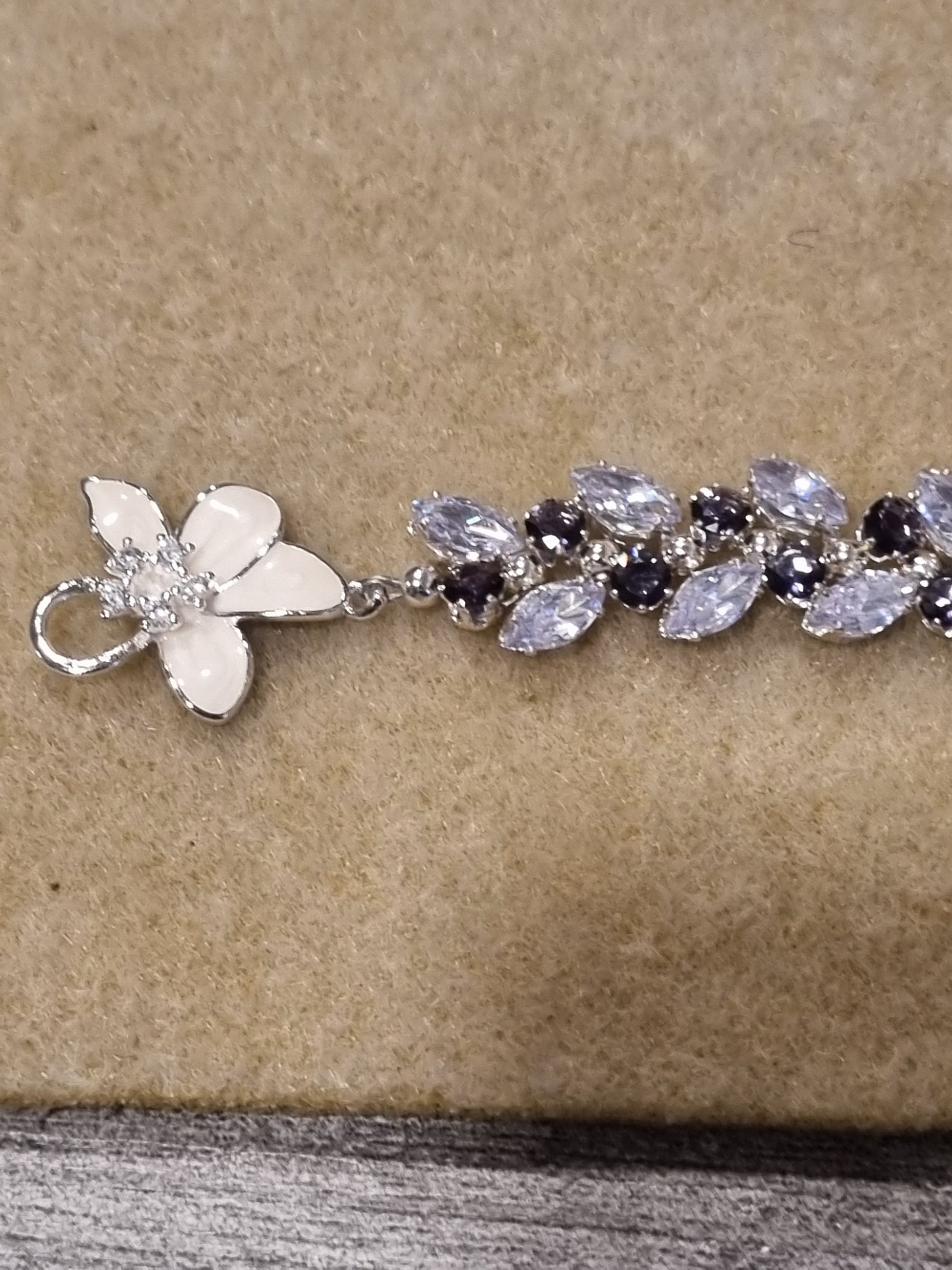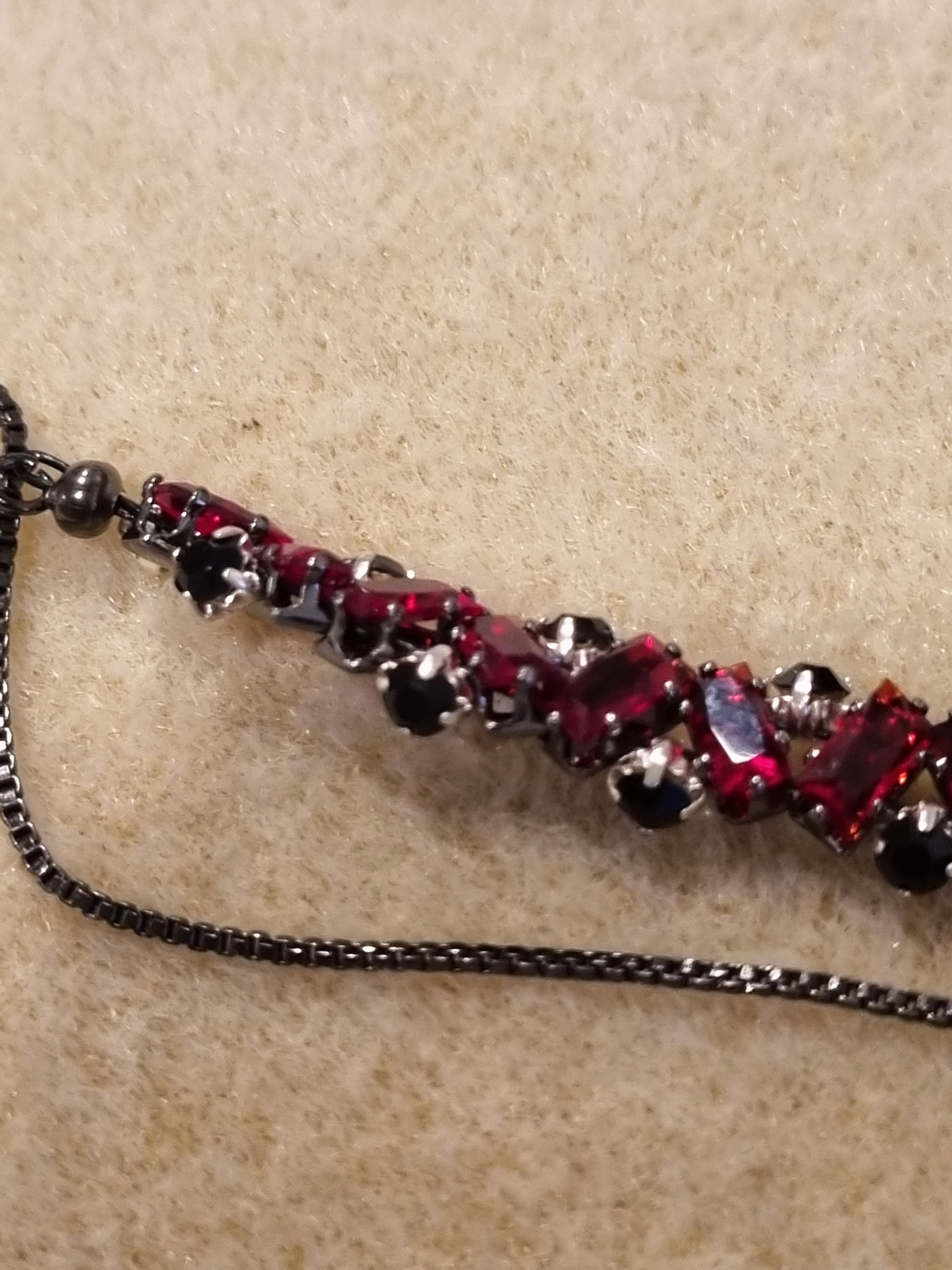 These are made of copper accents and a mix of glass, crystal, and zircon beads for maximum bling. These are all clasped with about an average of 6" length. If you need something different, please reach out.