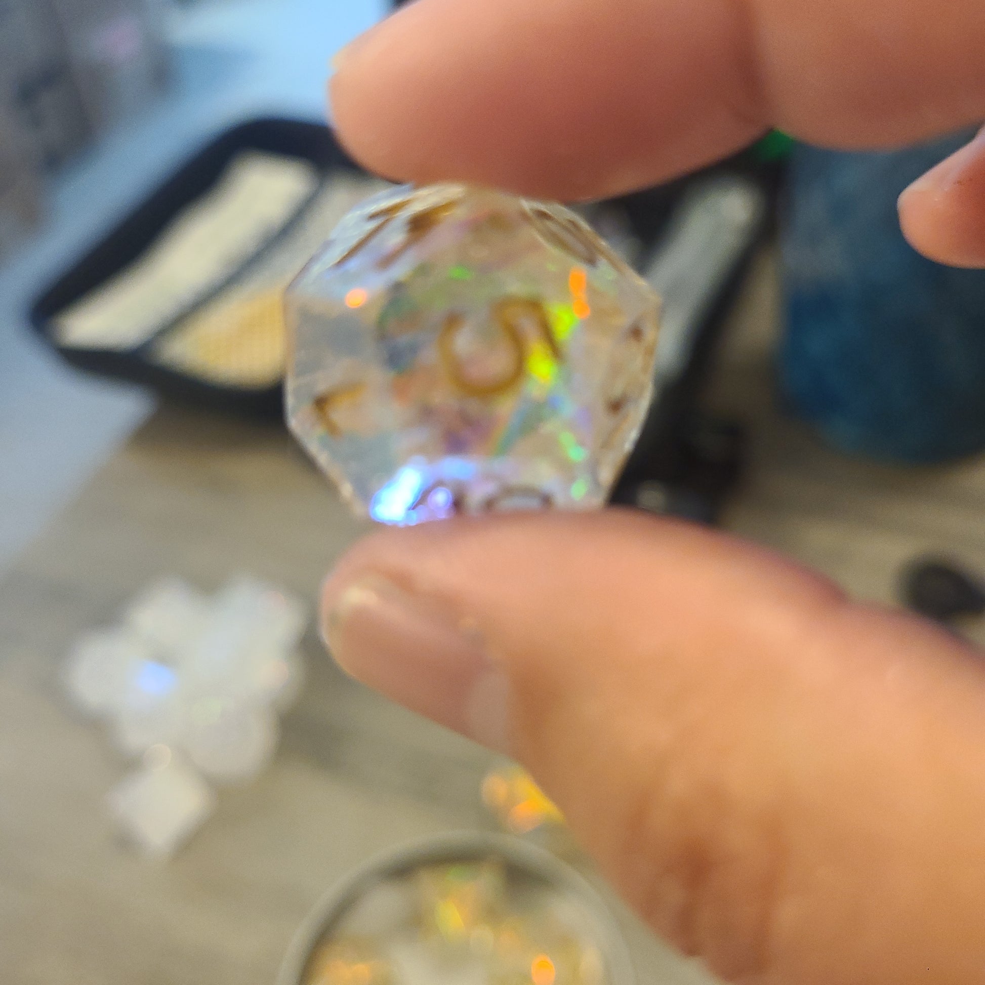 These are dice have mylar included in them - in sheets or as flakes. They can be plain mylar or let me know which colors you would like.
