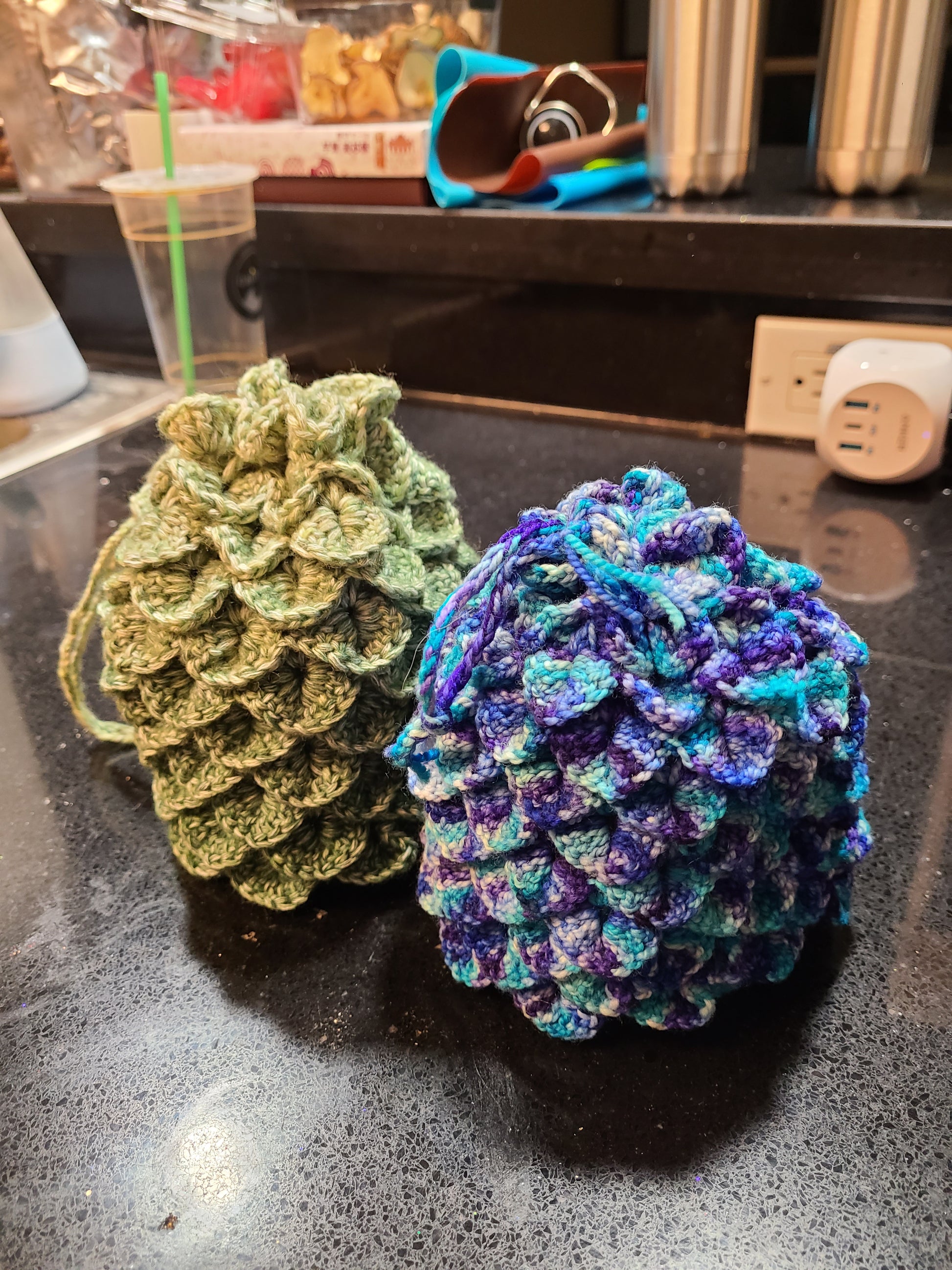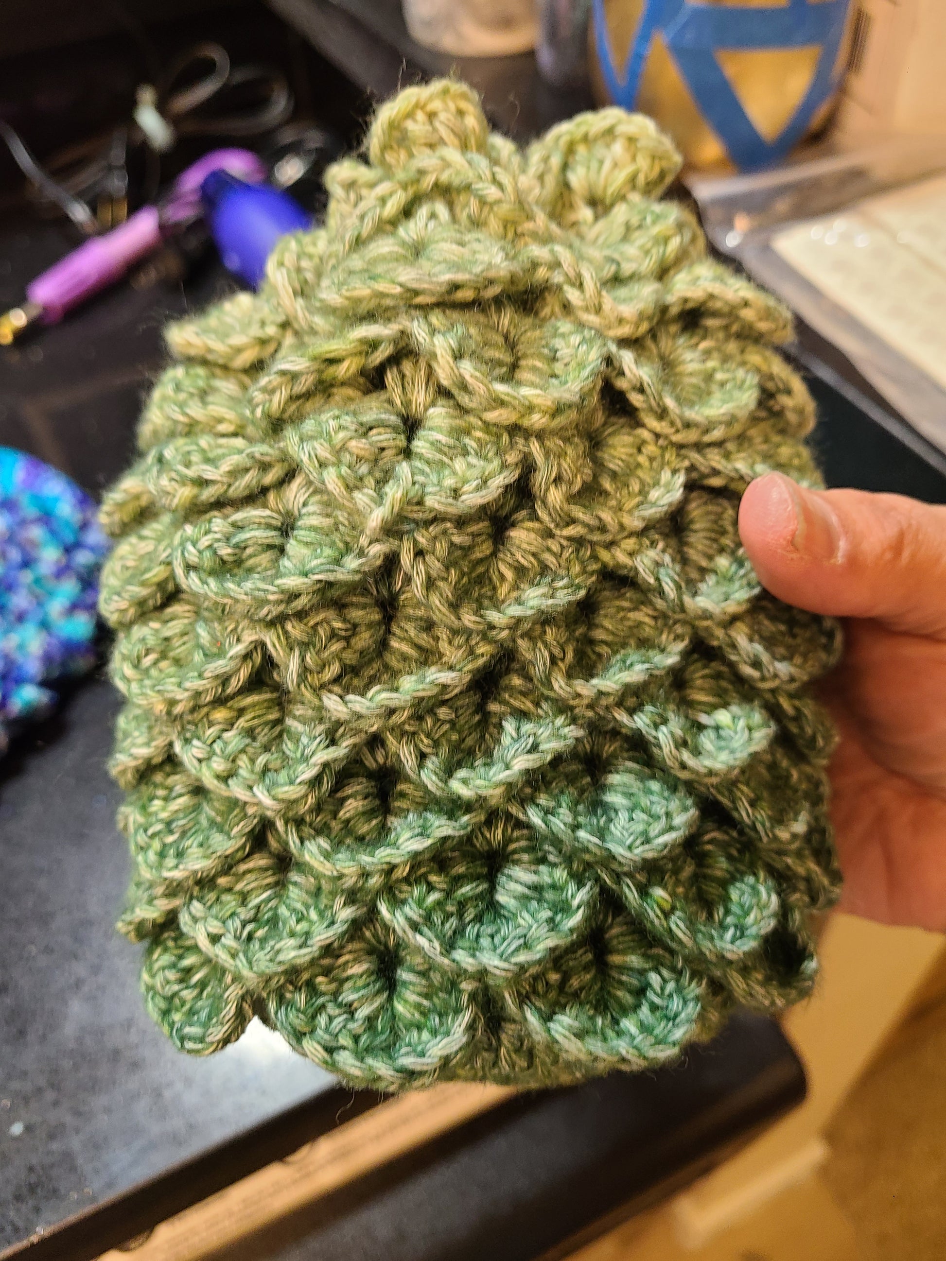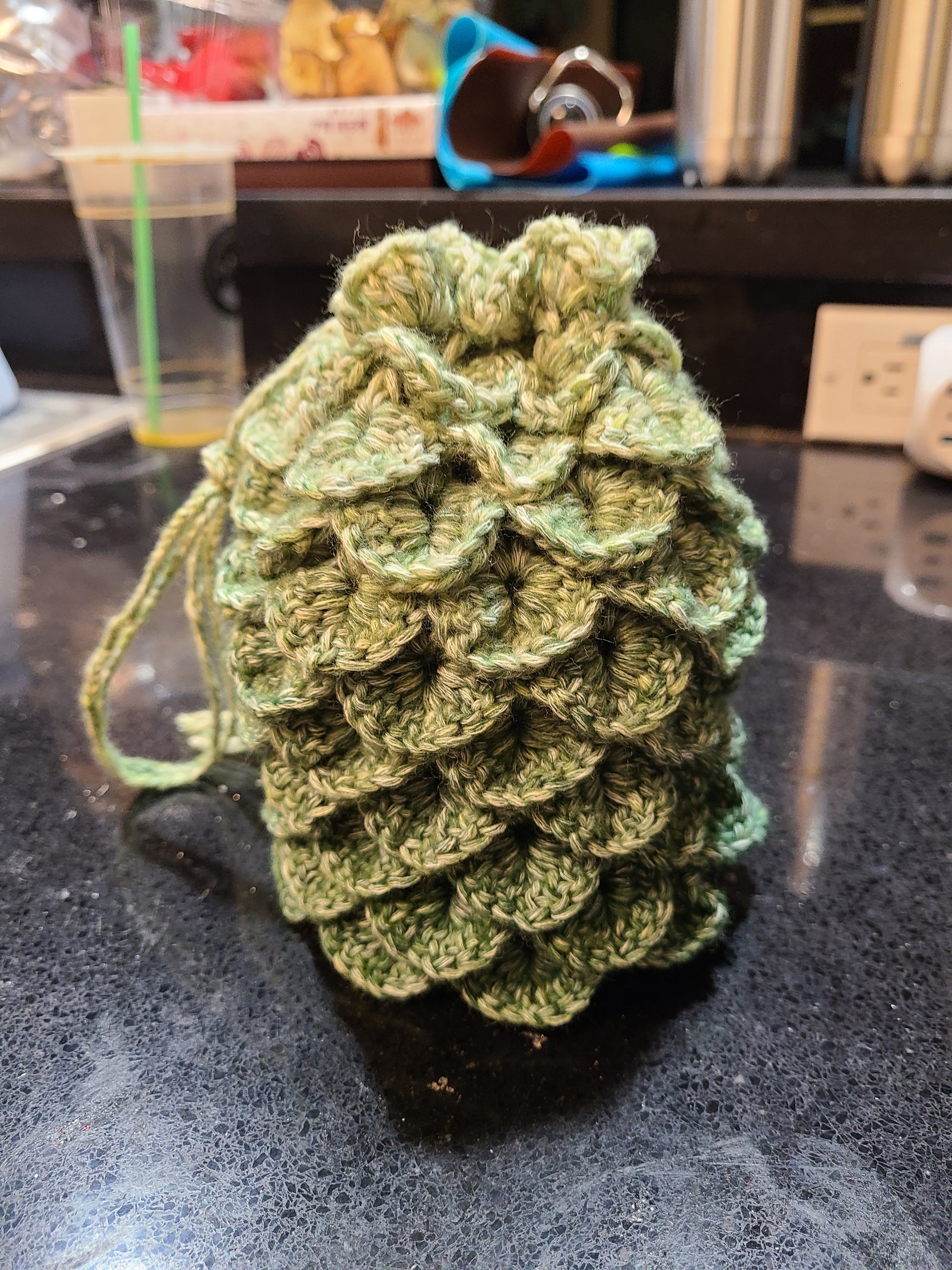 Do you play dice? OR just have things? Here is a cute little bag for you to keep your things in. Also. It looks like a dragon egg. So, maybe what is in your dragon scale dice bag is a dragon embryo?!