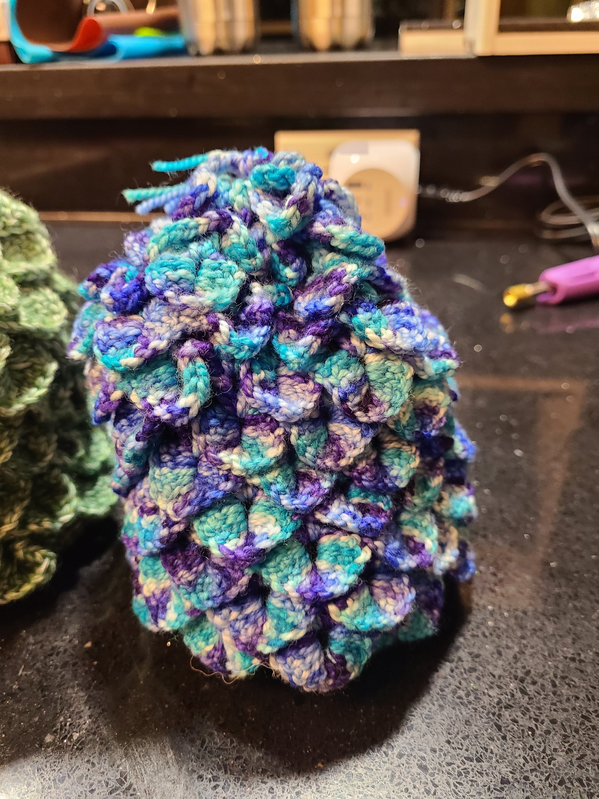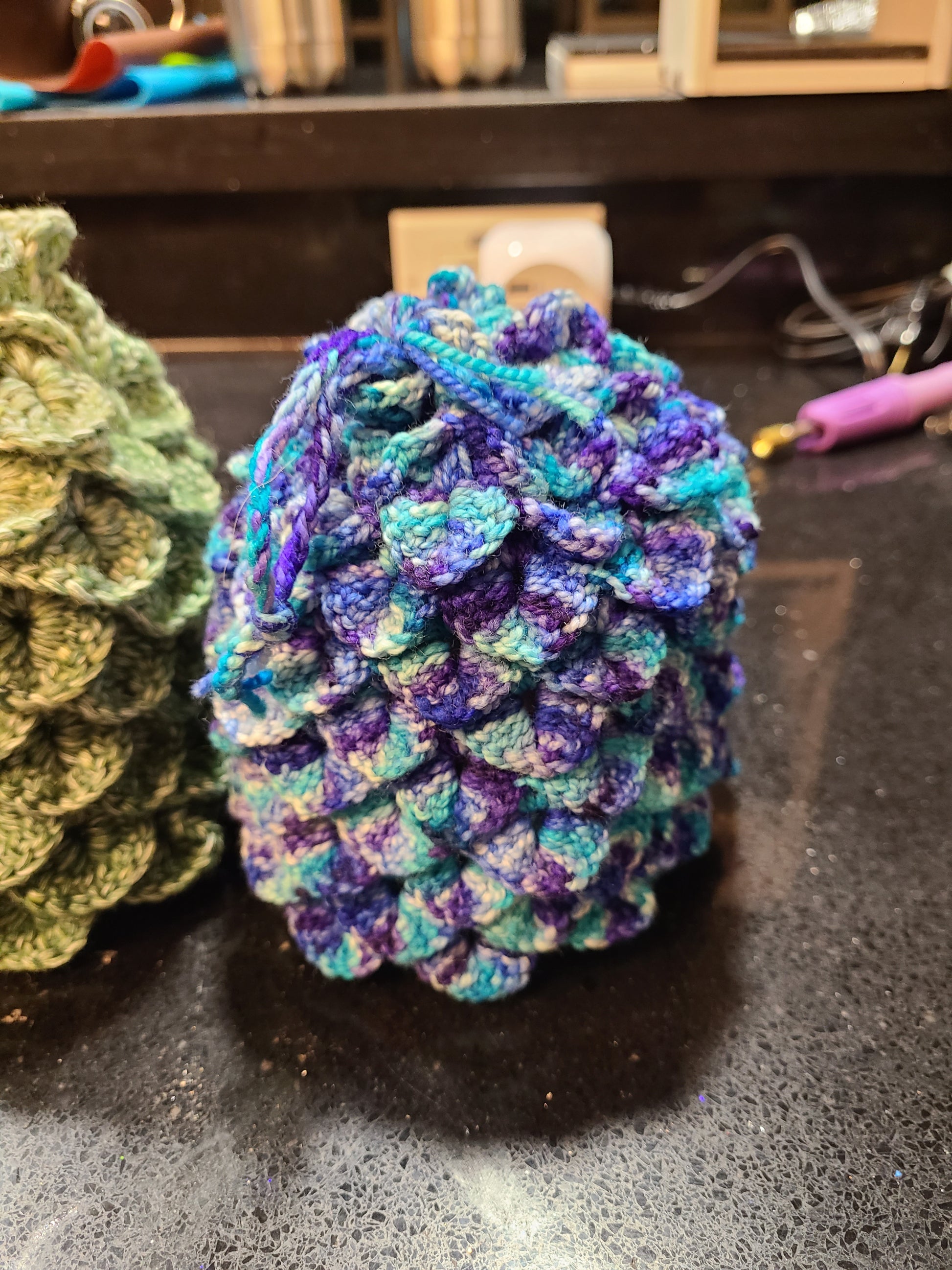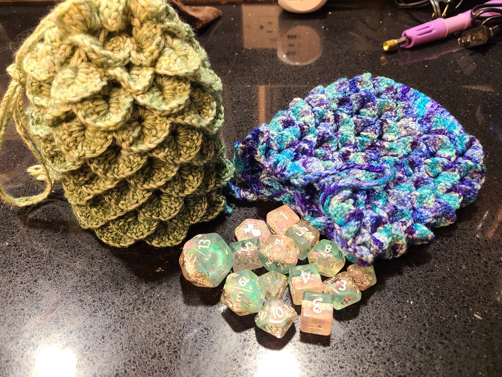 Do you play dice? OR just have things? Here is a cute little bag for you to keep your things in. Also. It looks like a dragon egg. So, maybe what is in your dragon scale dice bag is a dragon embryo?!