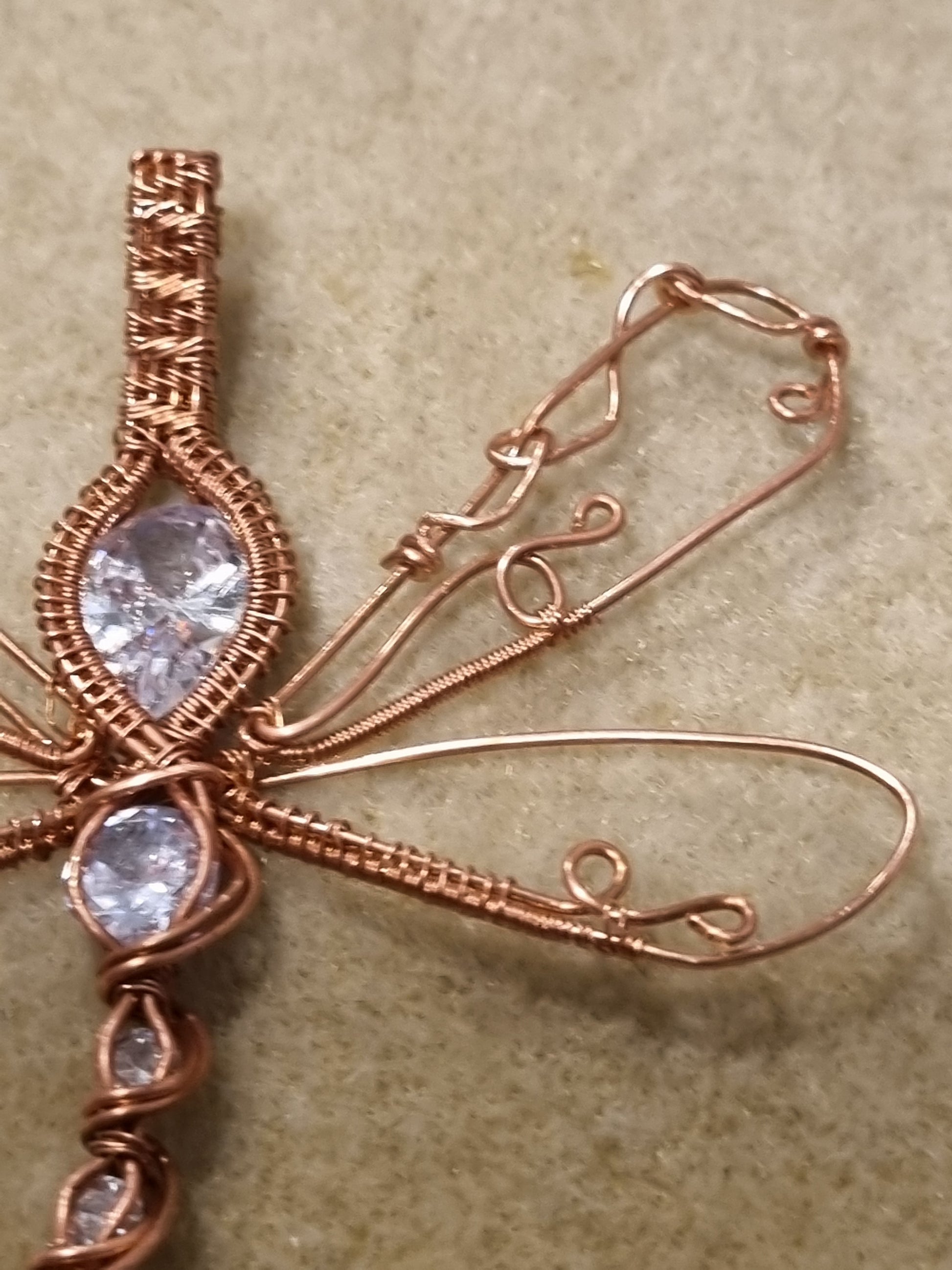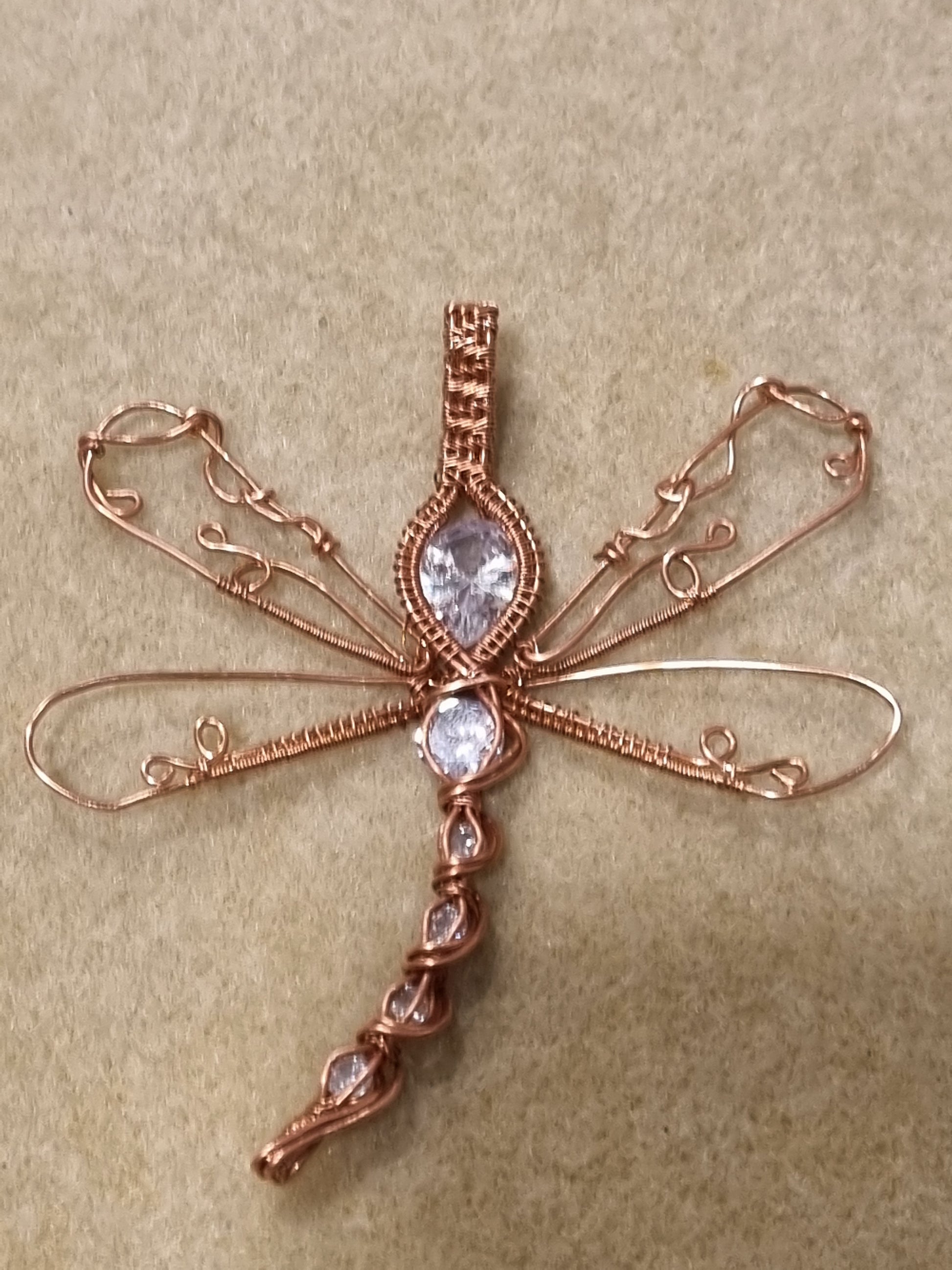 Zirconia and bare copper wire. Copper WILL TARNISH over time with water and air exposure. Please keep this in mind. You can polish it back to it's original shine.