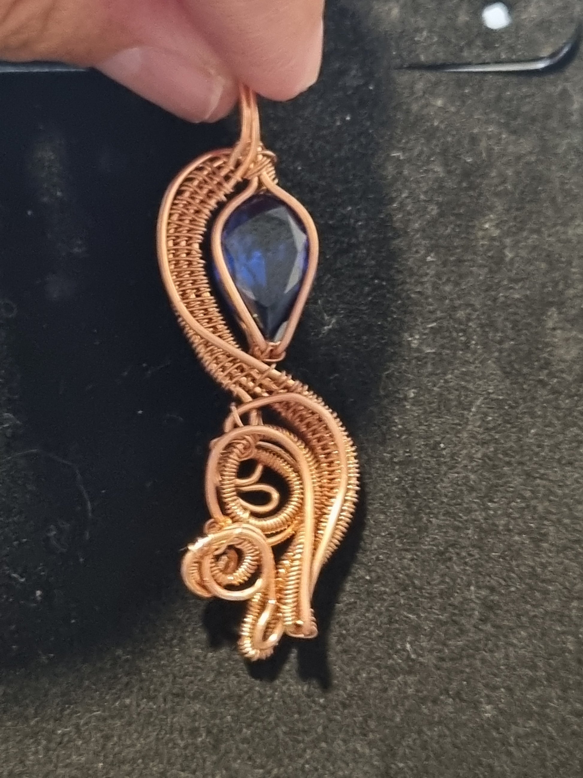 A little pretty shiny blue rhinestone. This one is up for interpretation - some say flower, some say fox, some say snake. The controversy is topic inducing, just like this pendant.