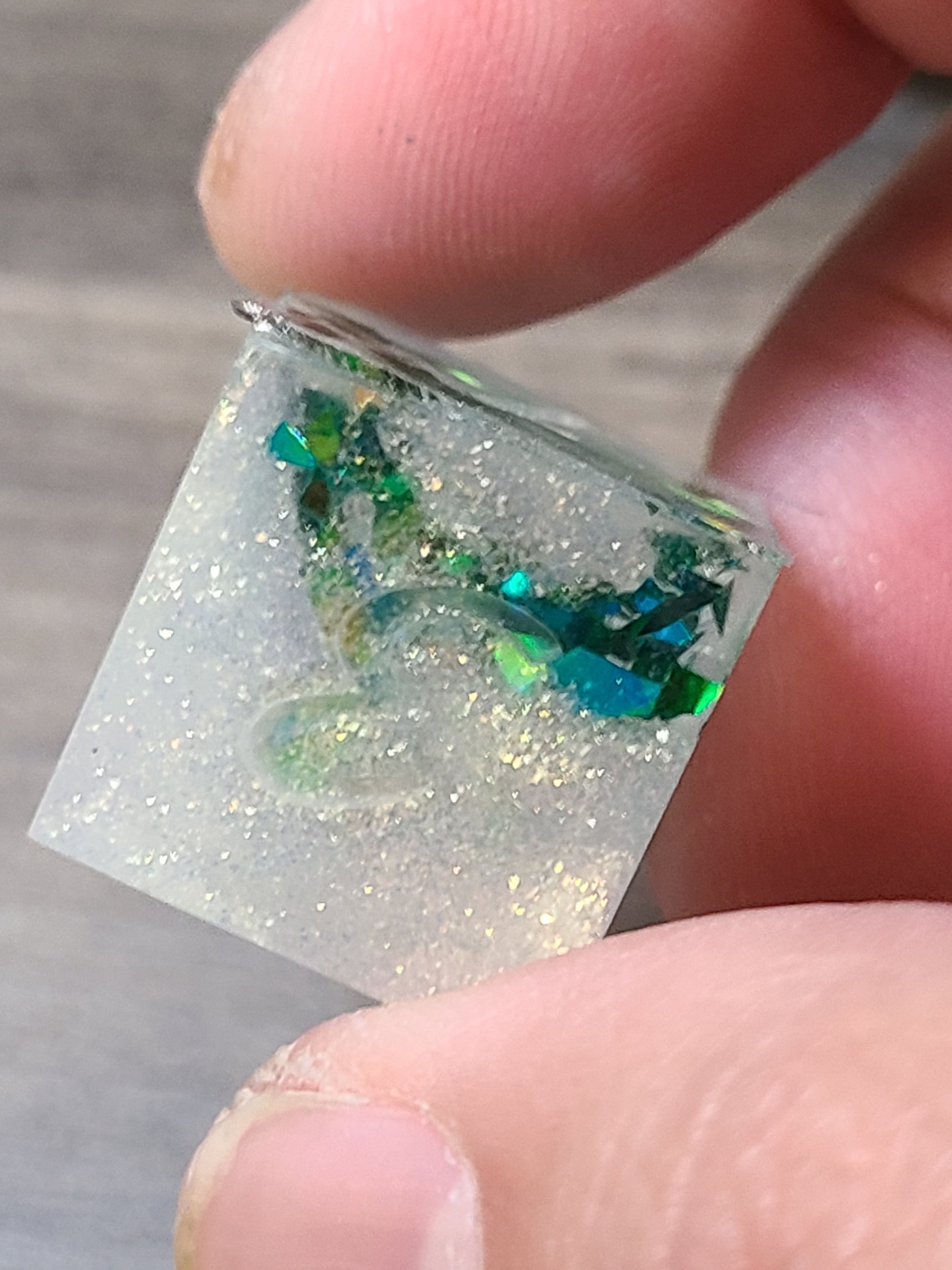 These beauties are done in a 2 color dirty pour of mylar flakes and a champagne gold.