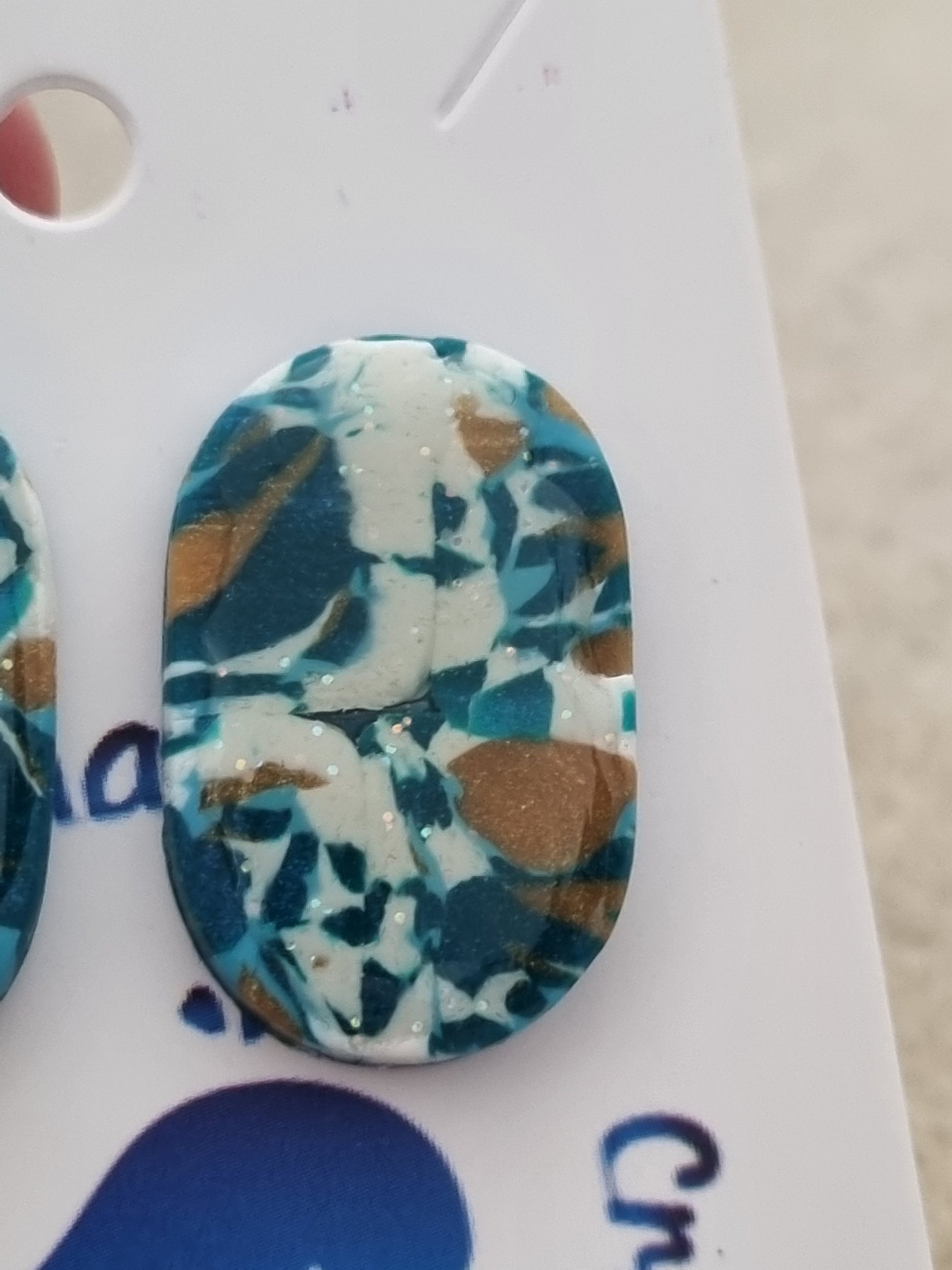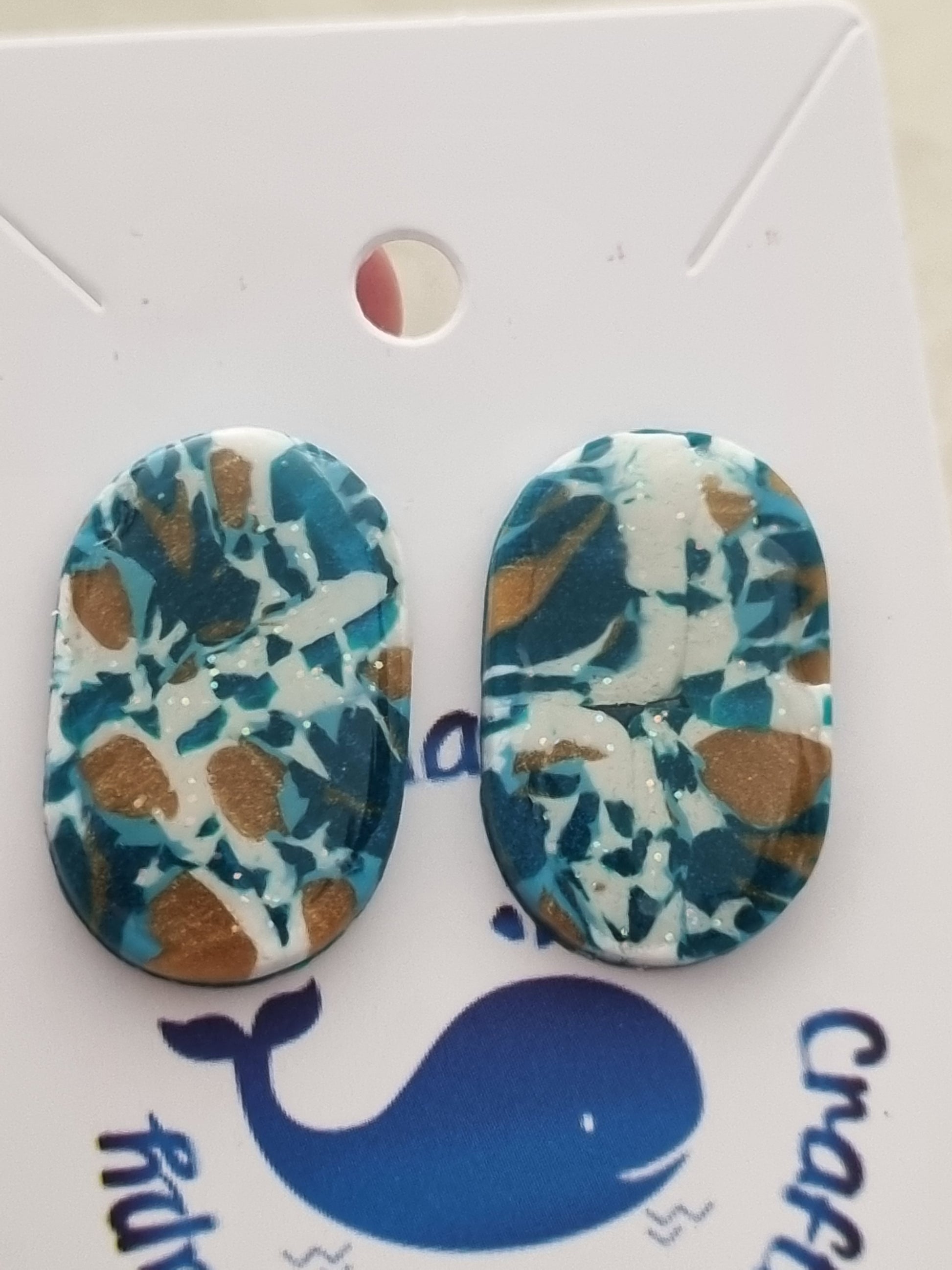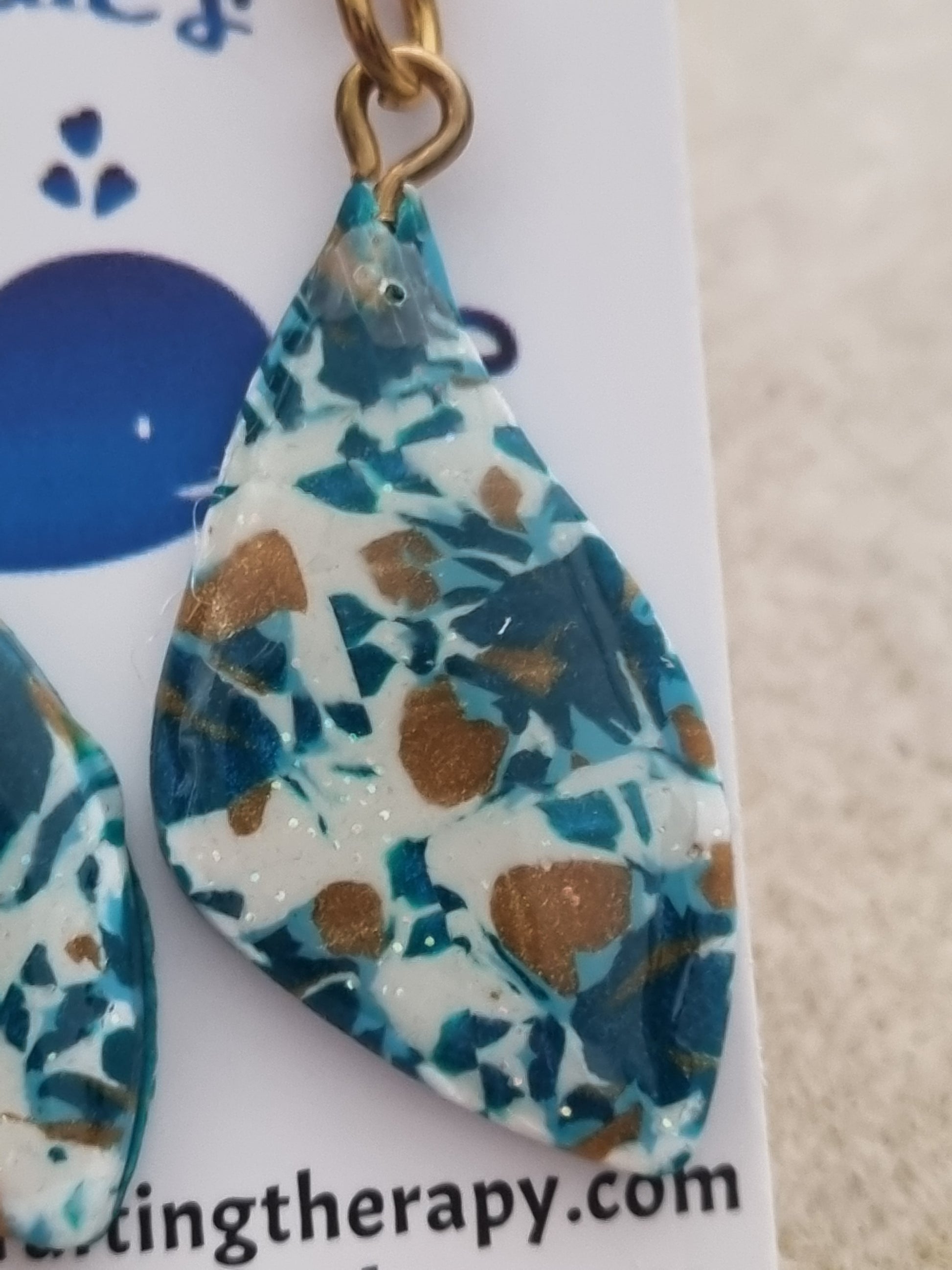Made with polymer clay with green gold and sparkly white. Simple clay earrings, but they make a statement.