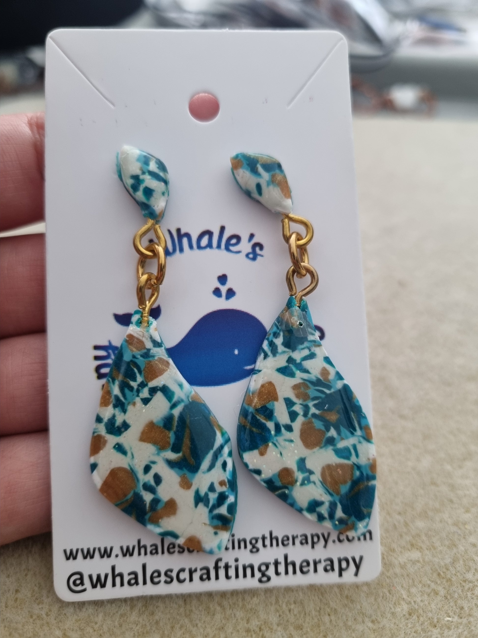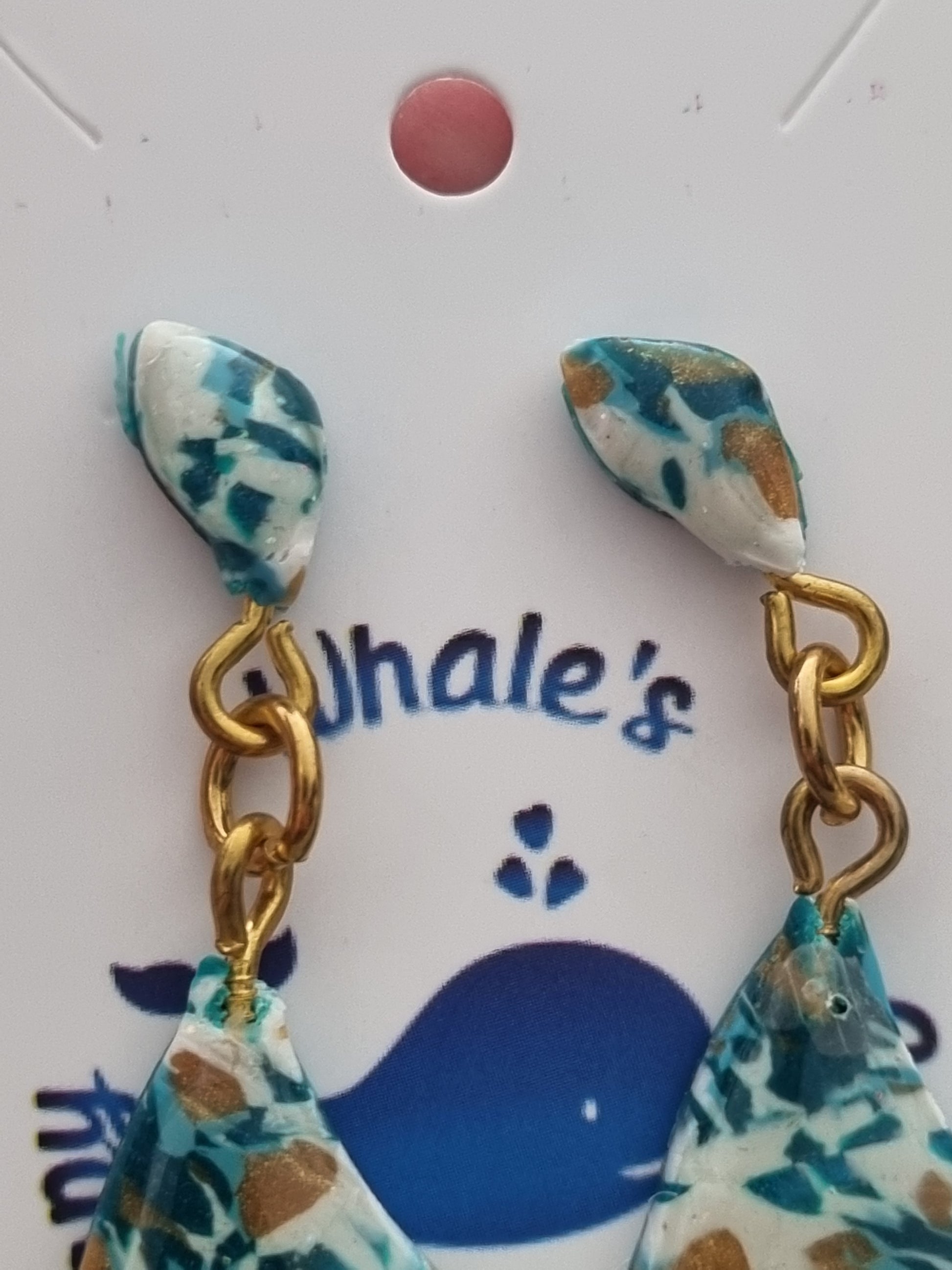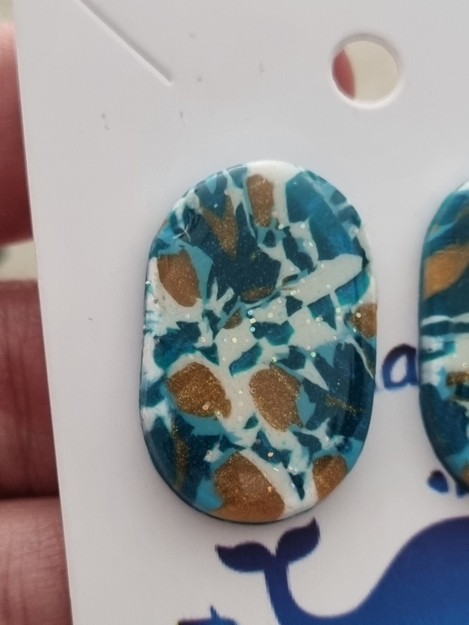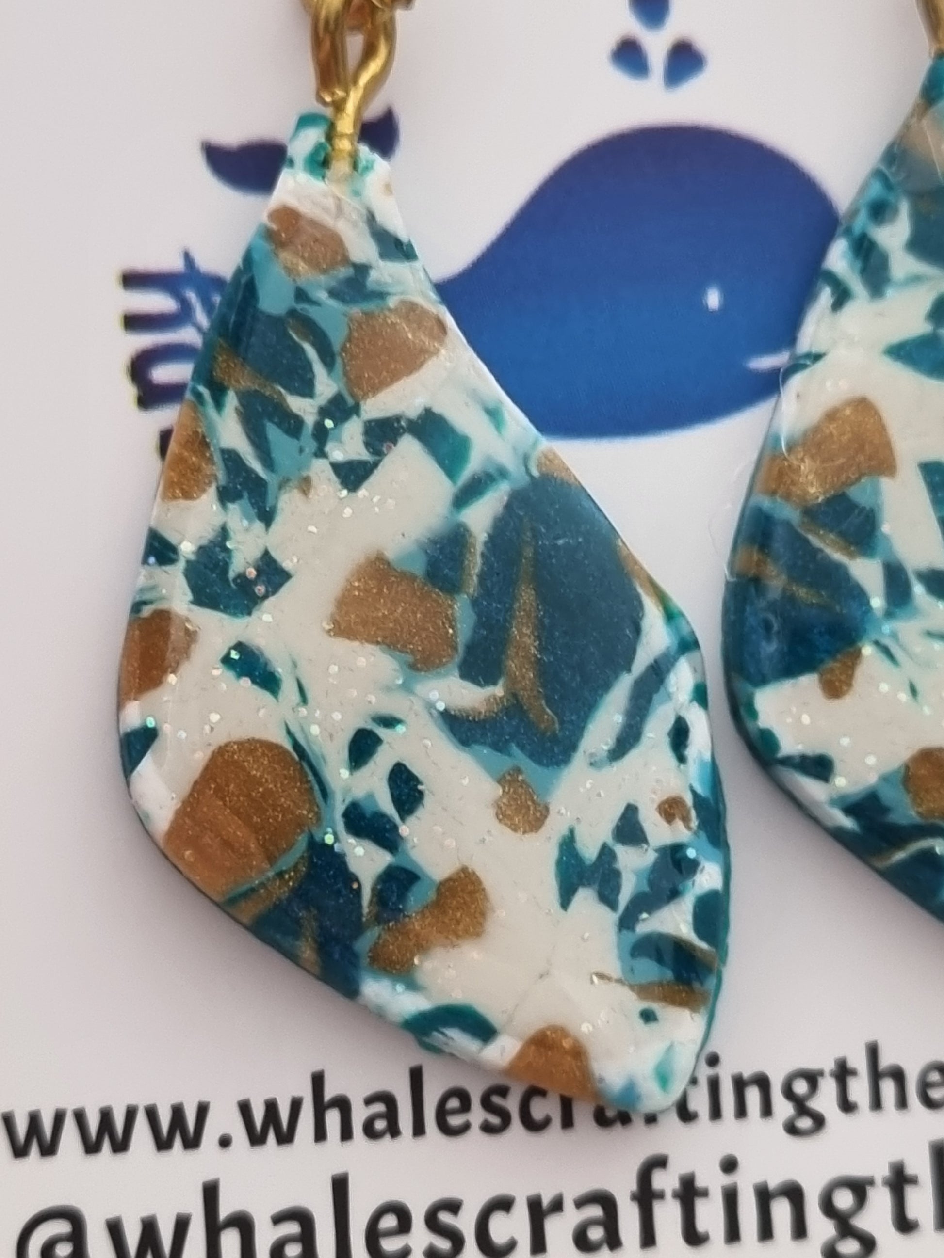 Made with polymer clay with green gold and sparkly white. Simple clay earrings, but they make a statement.