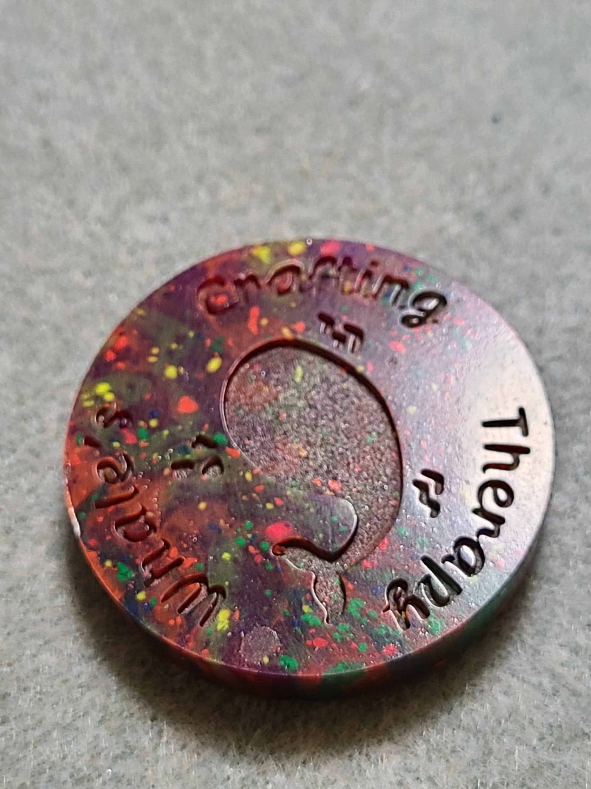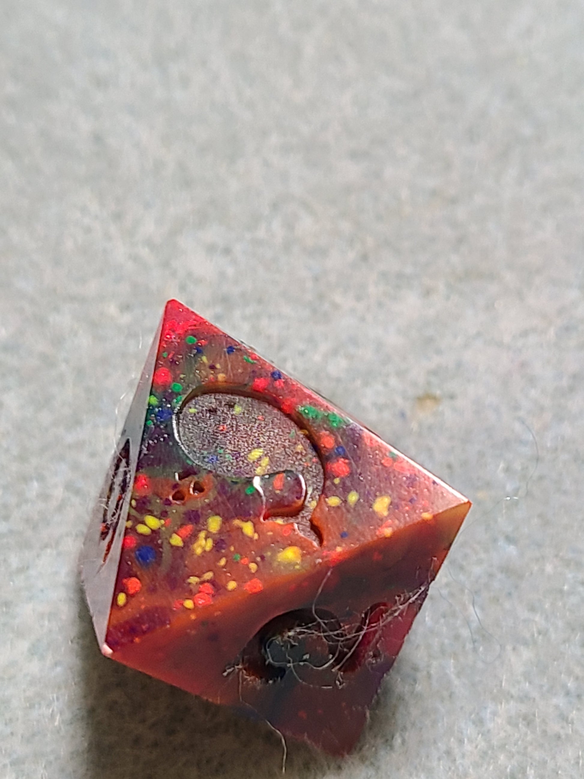 Not only did I manage the muddle the colors of a neon rainbow set, I also managed not mix in the micas properly. So - it kinda of looks like a graffti look - which is an idea. There are no voids - just kinda fugly. This is a standard set with a crystal d4 and a d2.