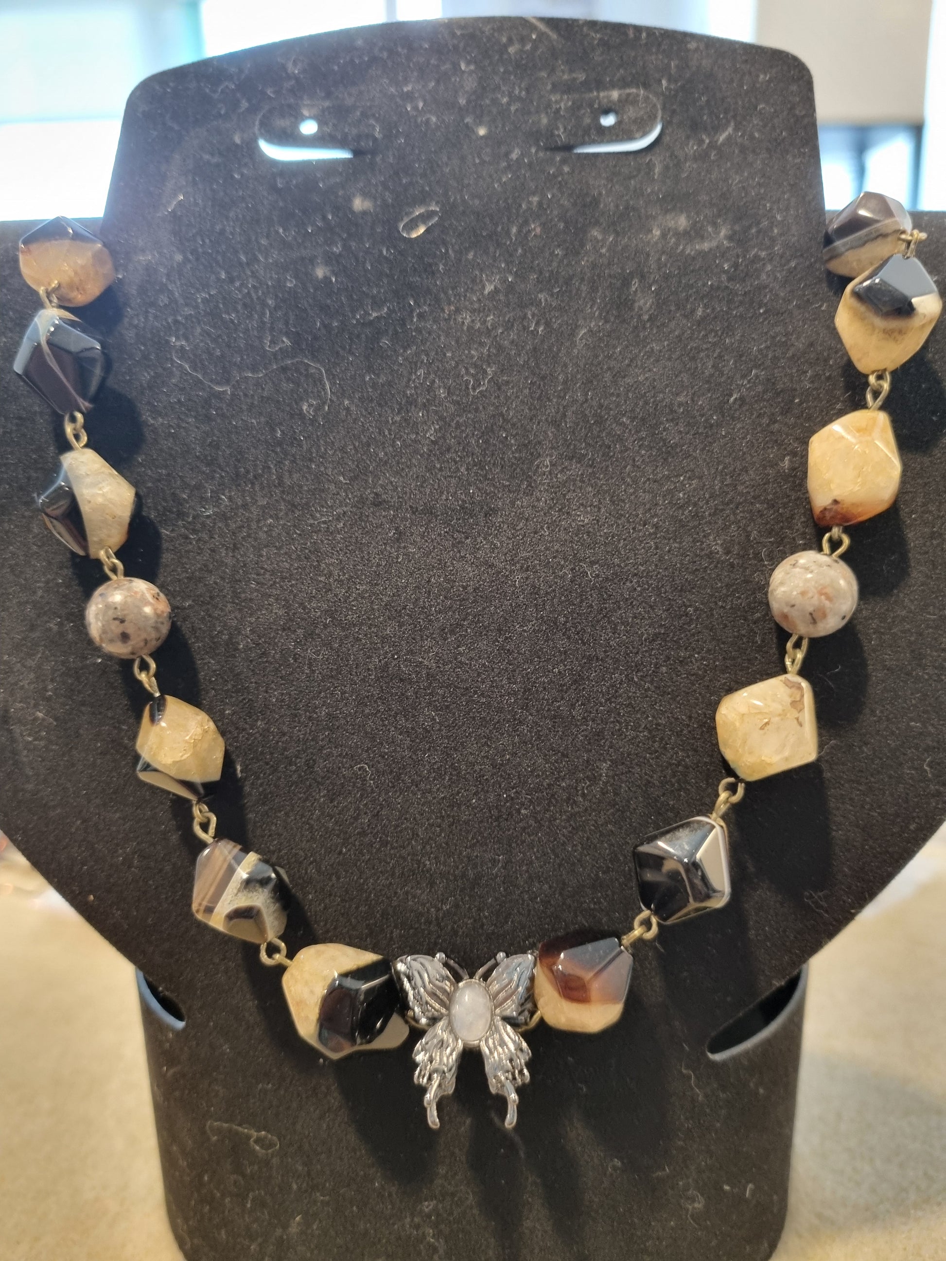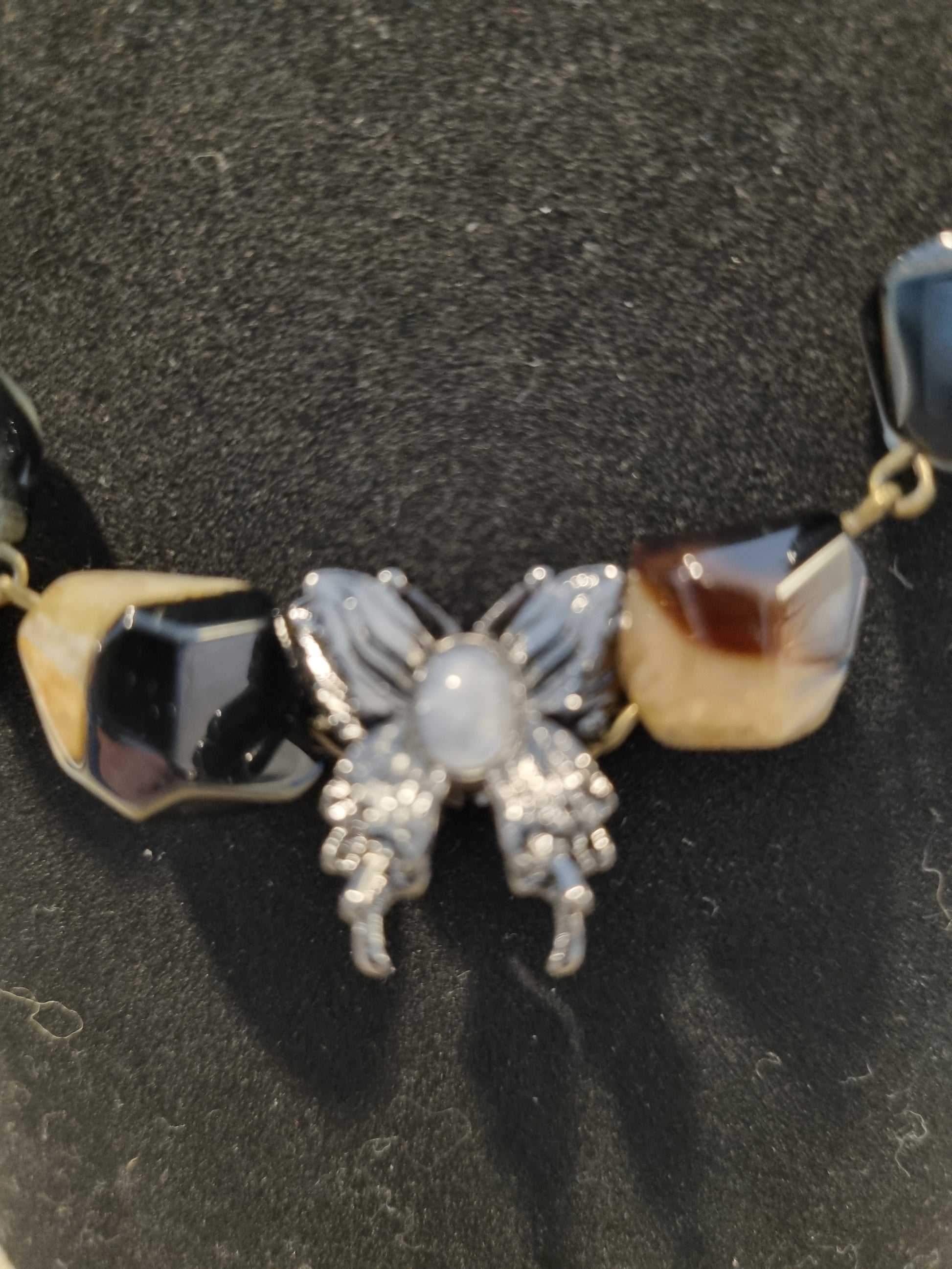 Blue Moonstone in Butterfly - Blue Moonstone is a gemstone associated with calming energy, emotional balance, and intuition. It is often referred to as the "stone of new beginnings," believed to promote inner peace and support personal growth.