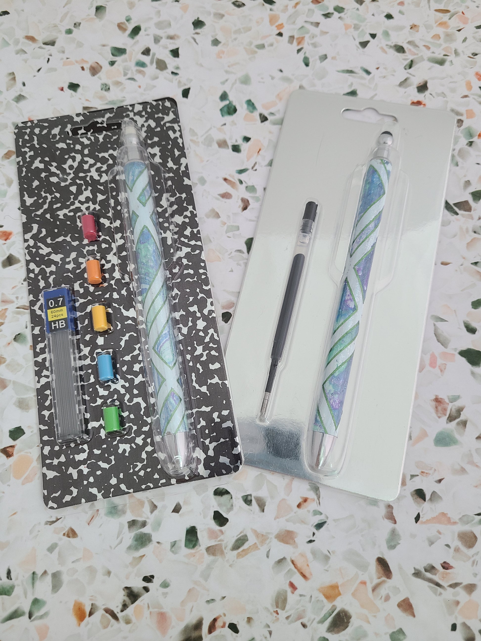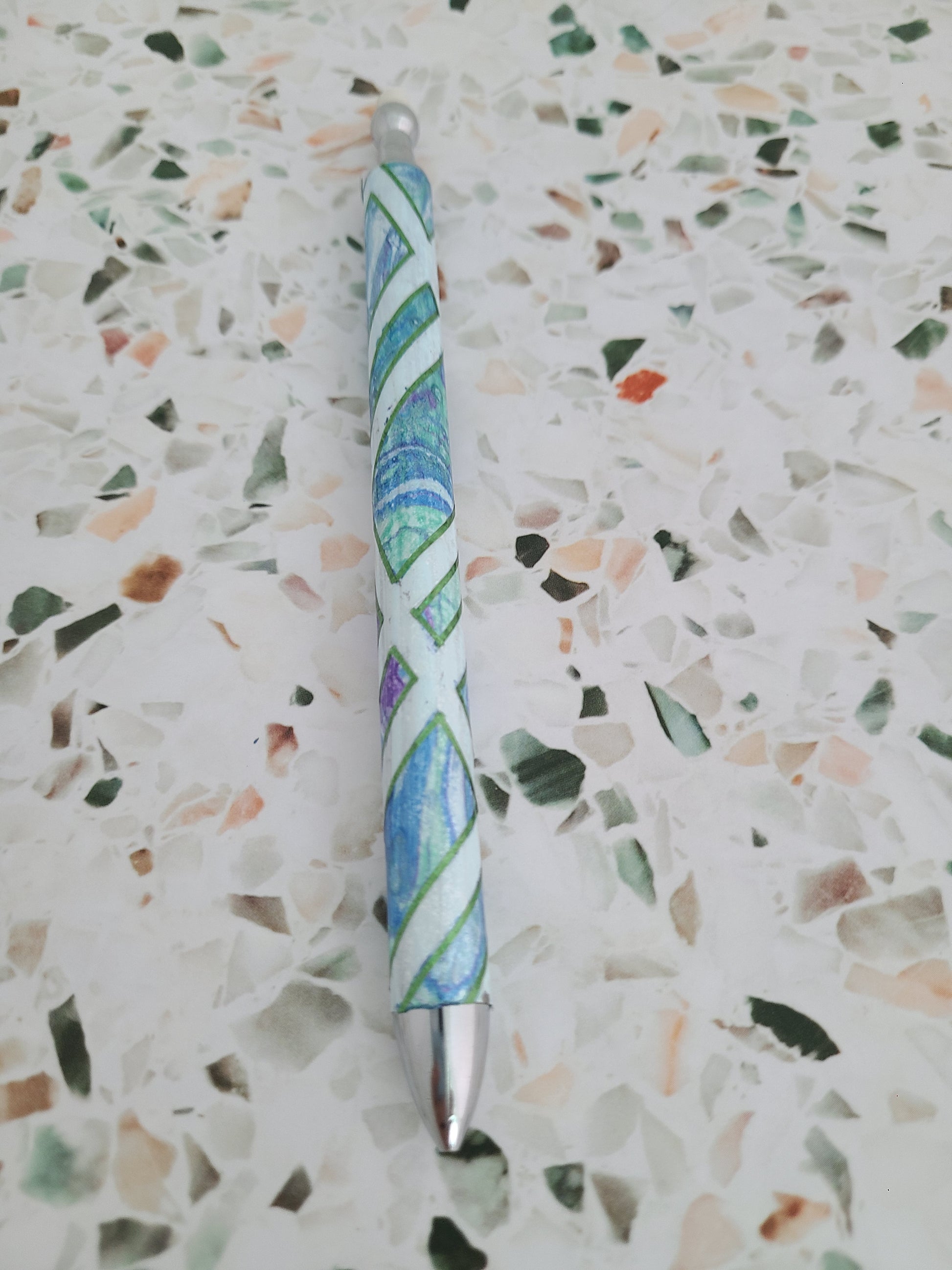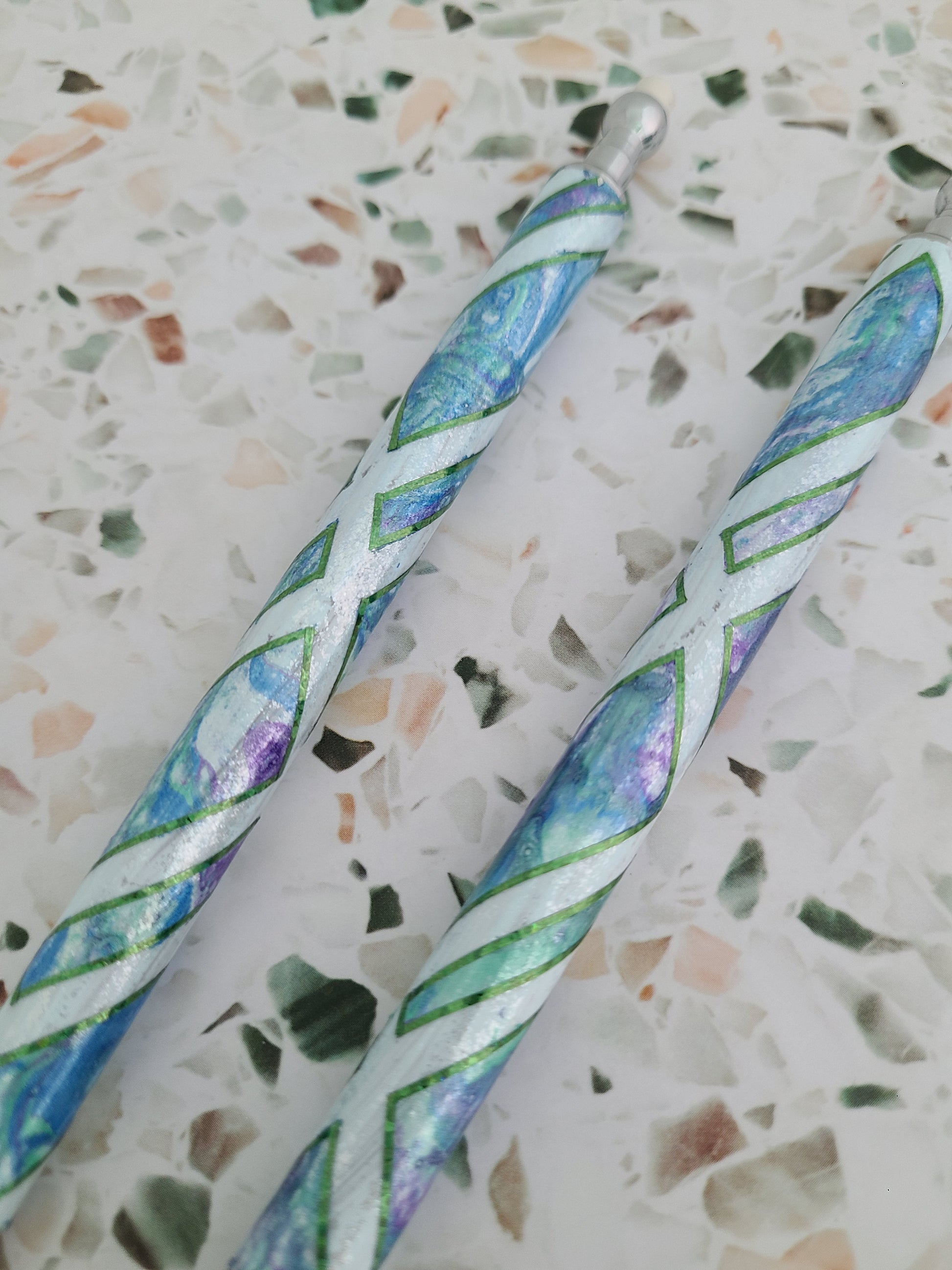 A glittered background, then shattered and hydrop dipped in green blue and purple metallic.