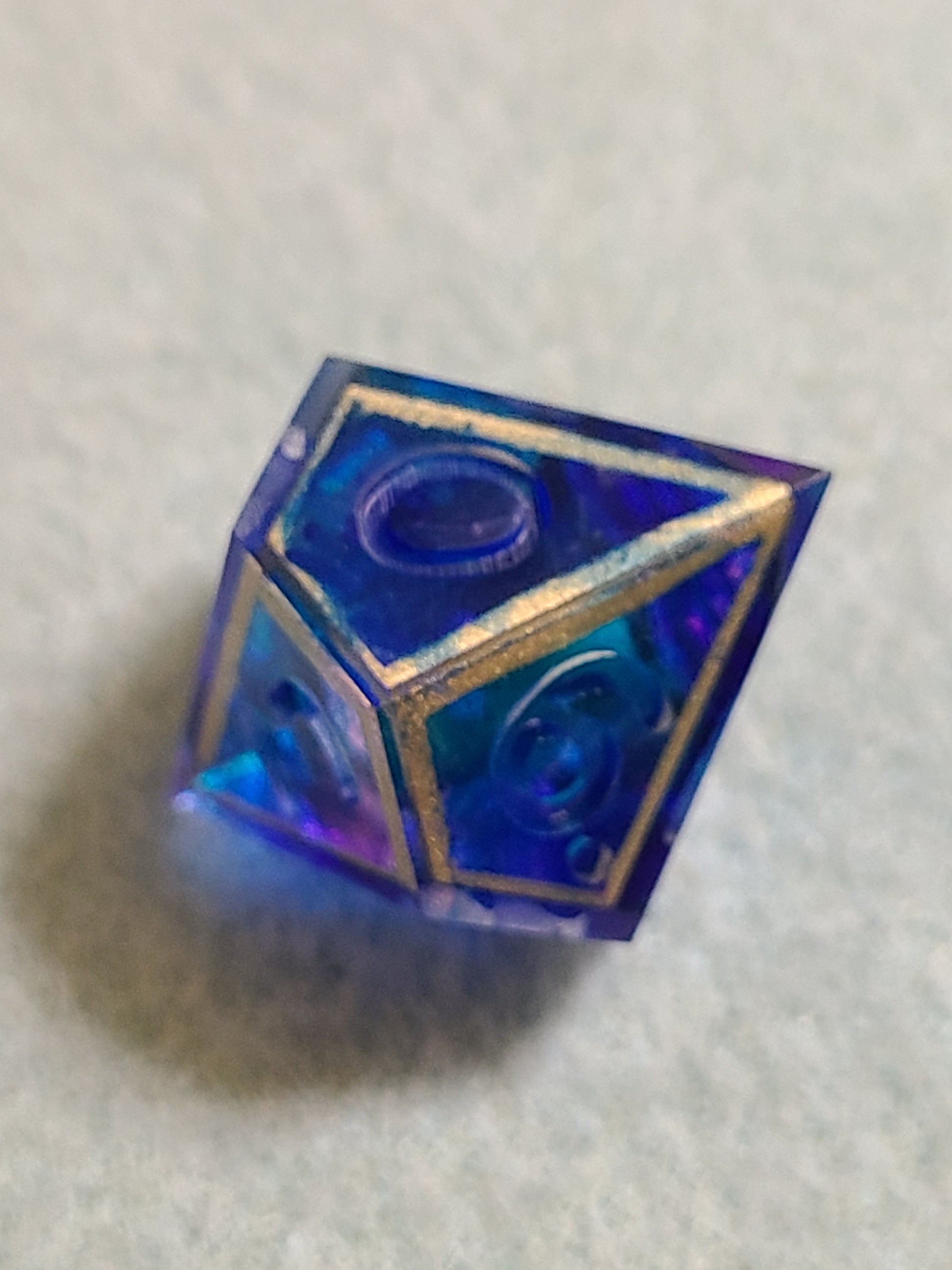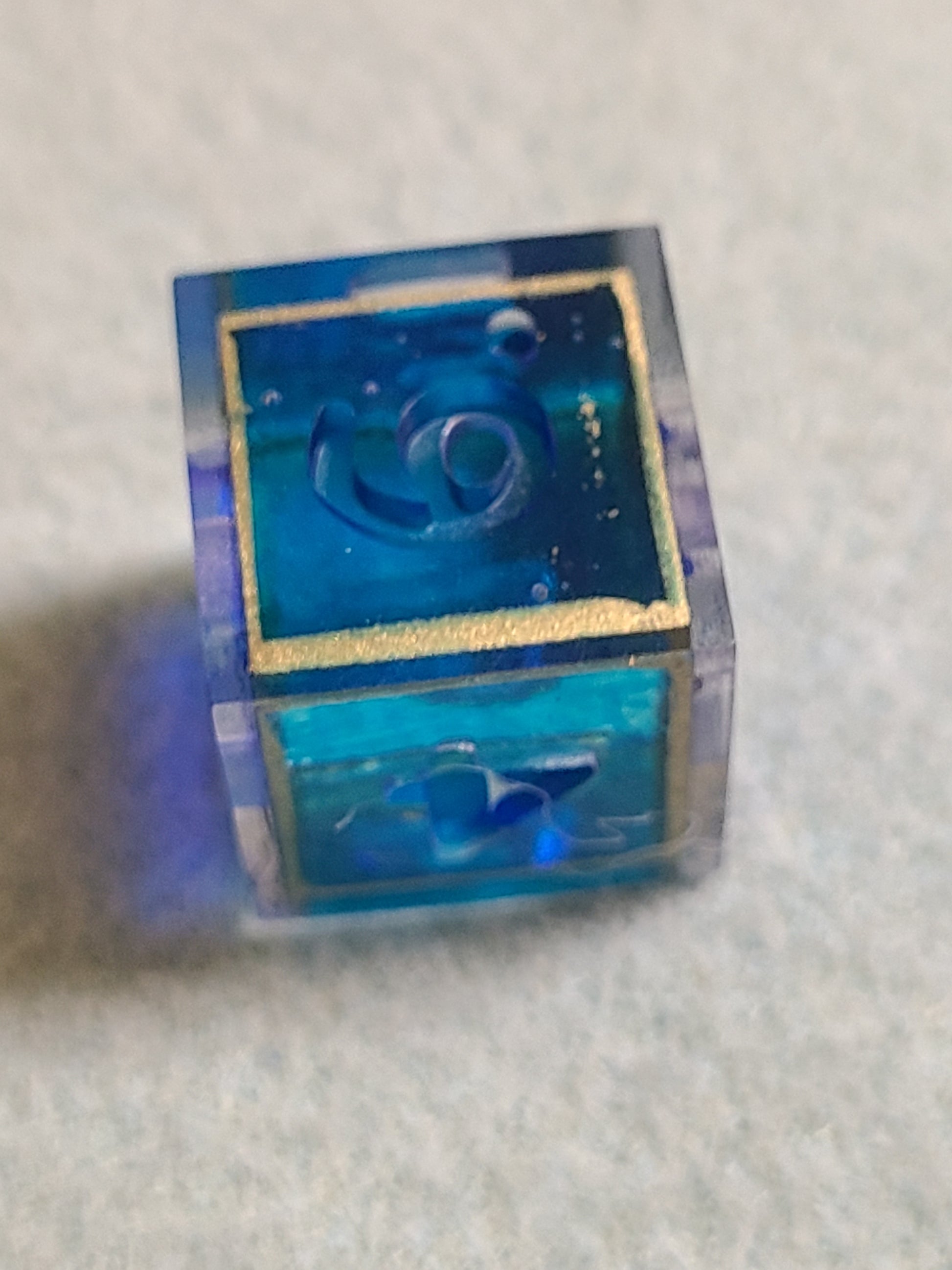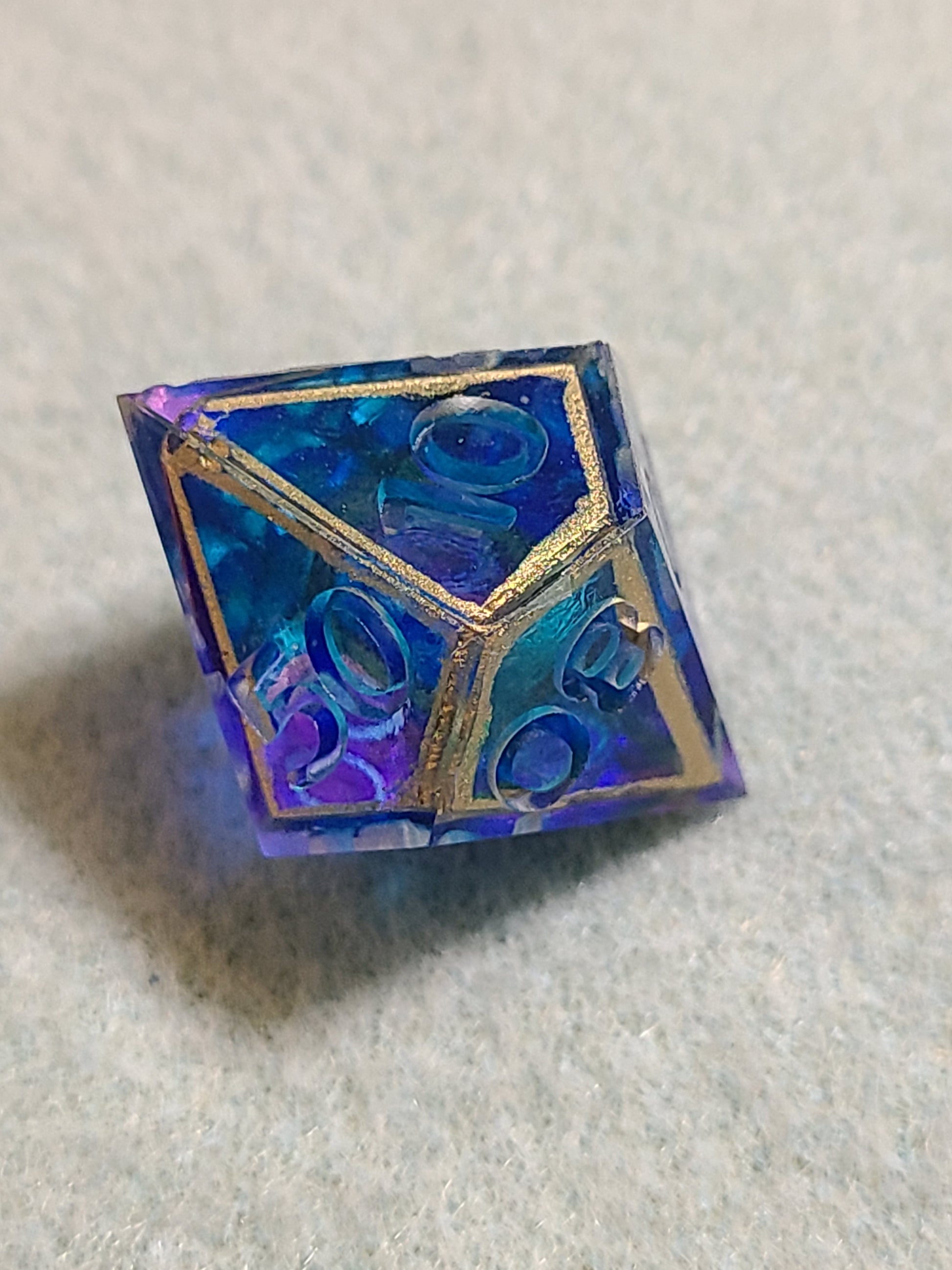 These dice were my first attempt at a stained glass attempt and the colors have bled through which is why I have discounted them. They are still quite pretty - just not perfect.