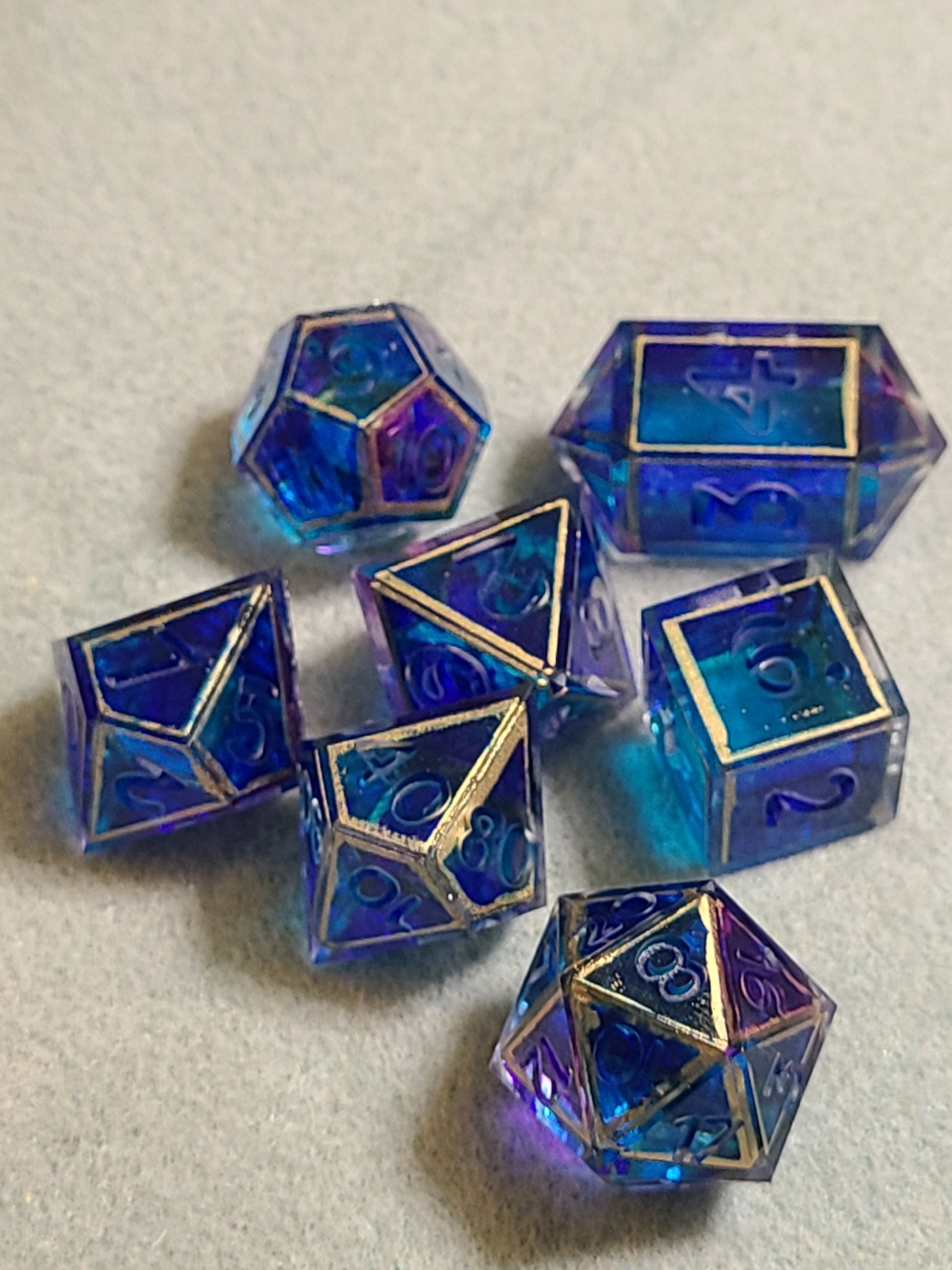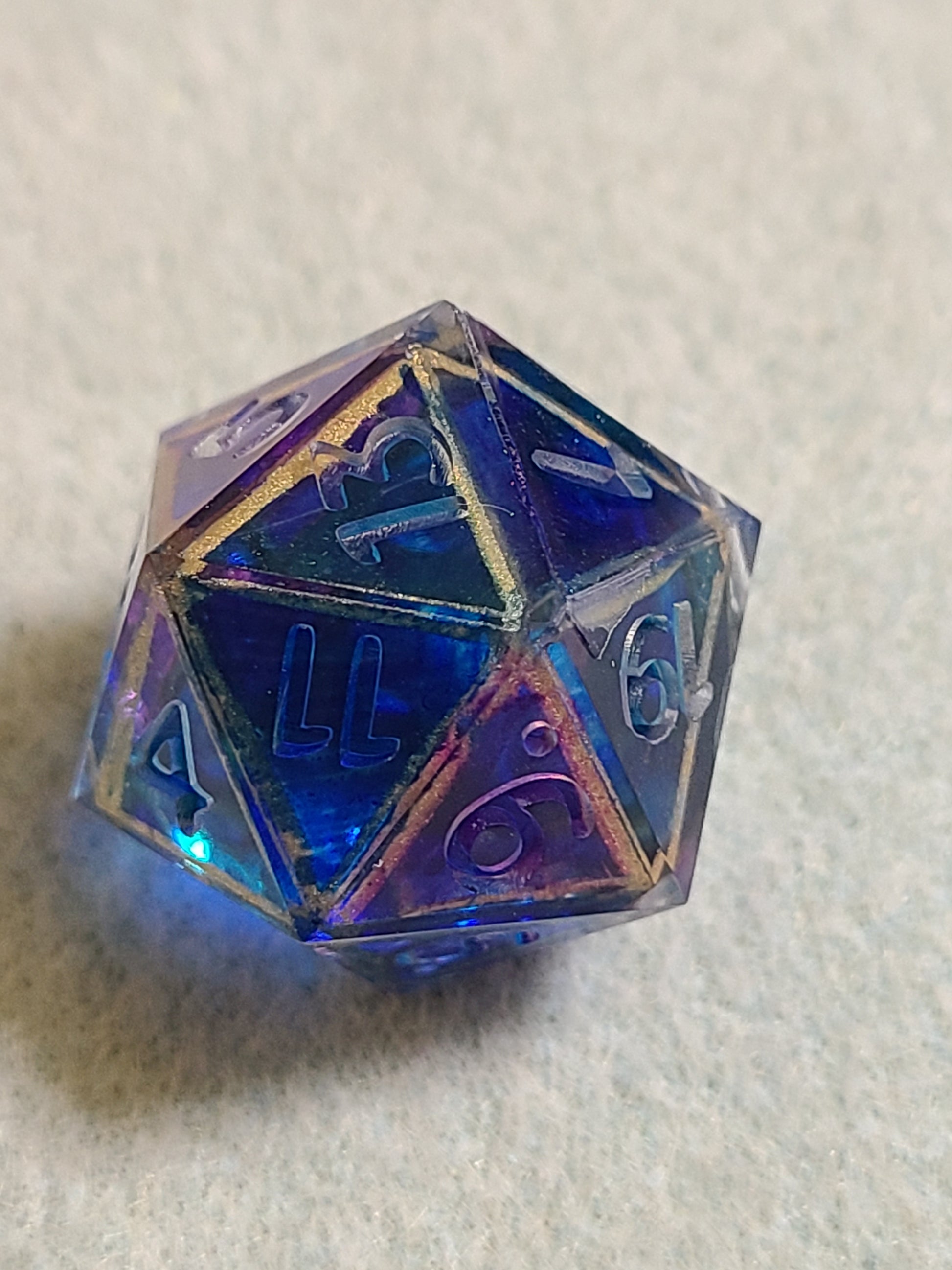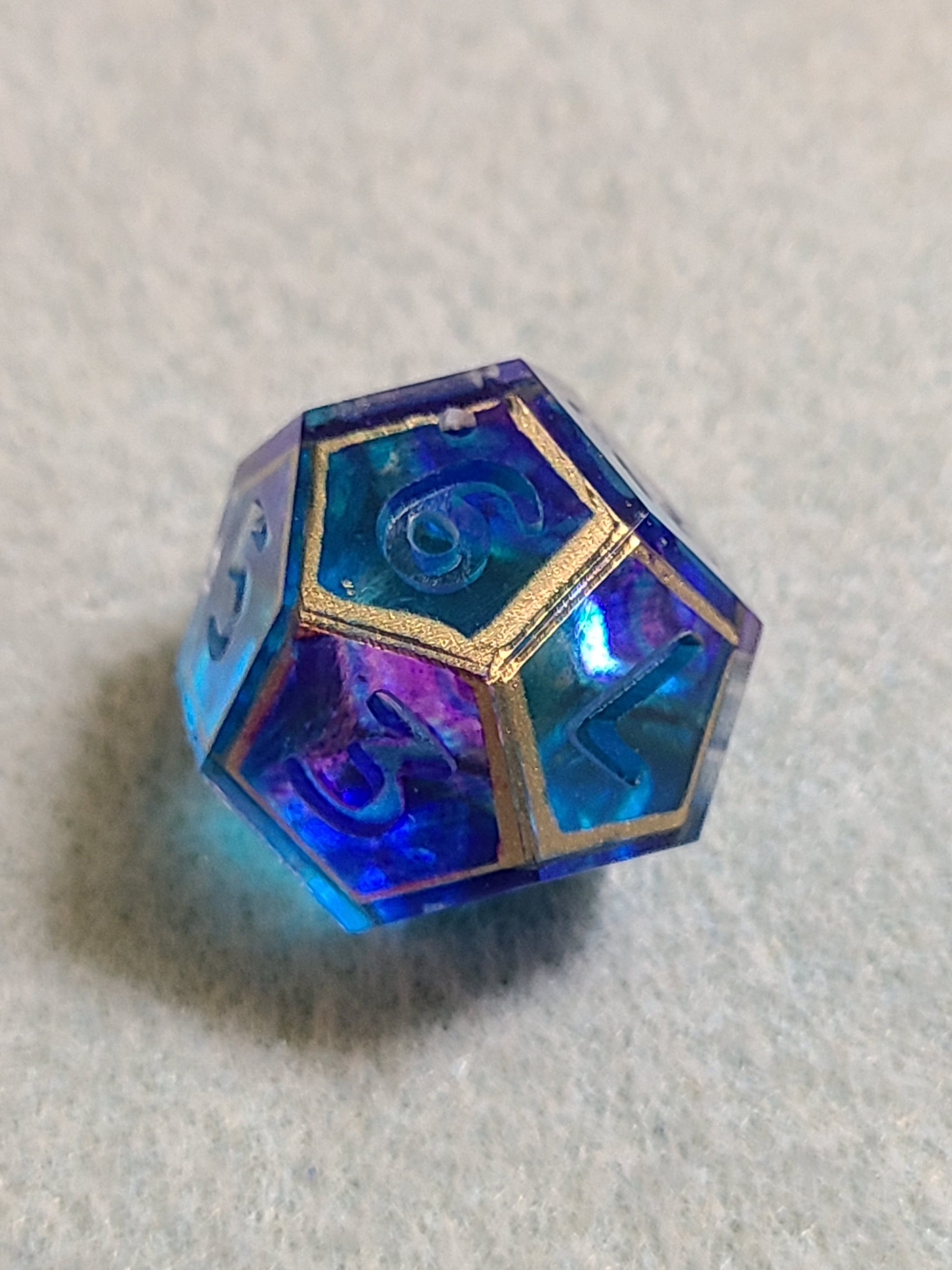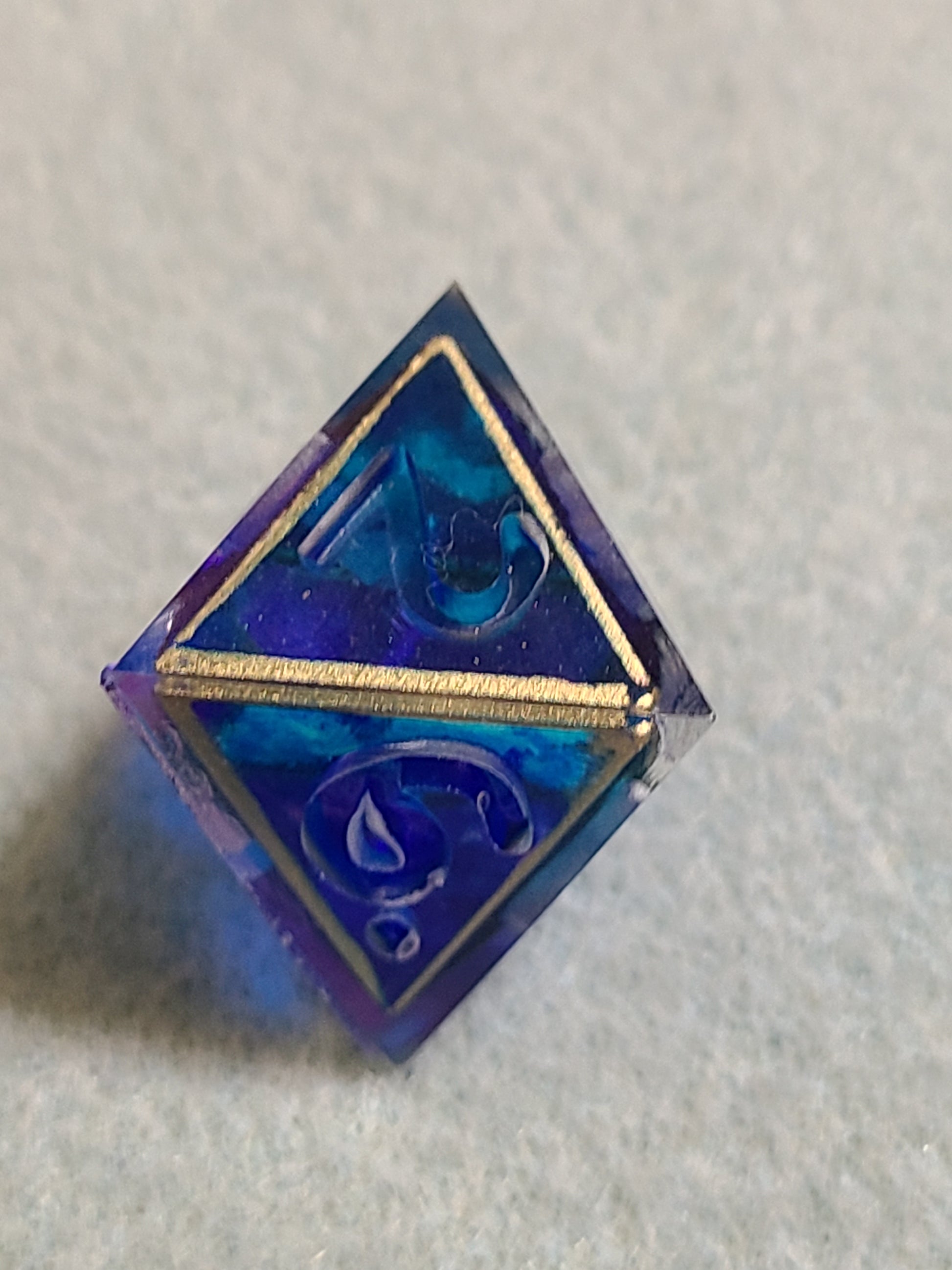 These dice were my first attempt at a stained glass attempt and the colors have bled through which is why I have discounted them. They are still quite pretty - just not perfect.