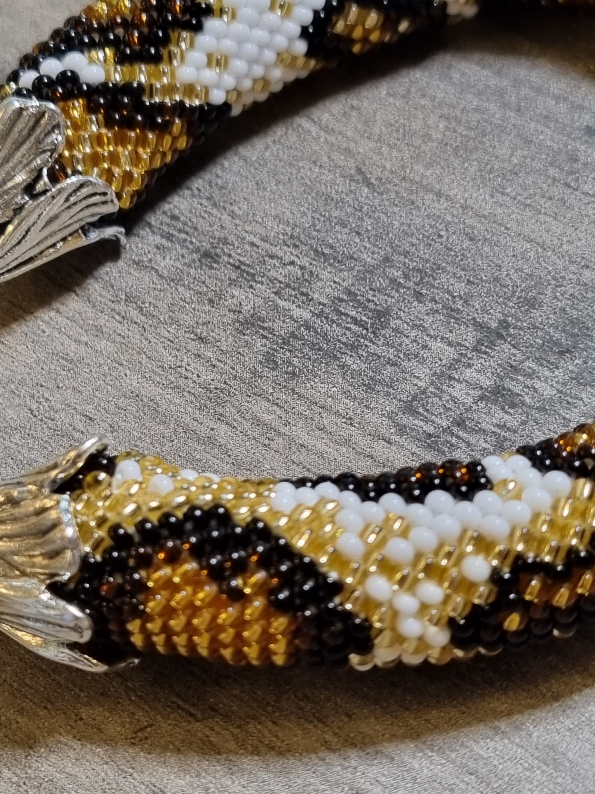 This set is a beaded crochet design by Crazyyy Academy. The design is done with transparent seed beads. It's soft and flexible.