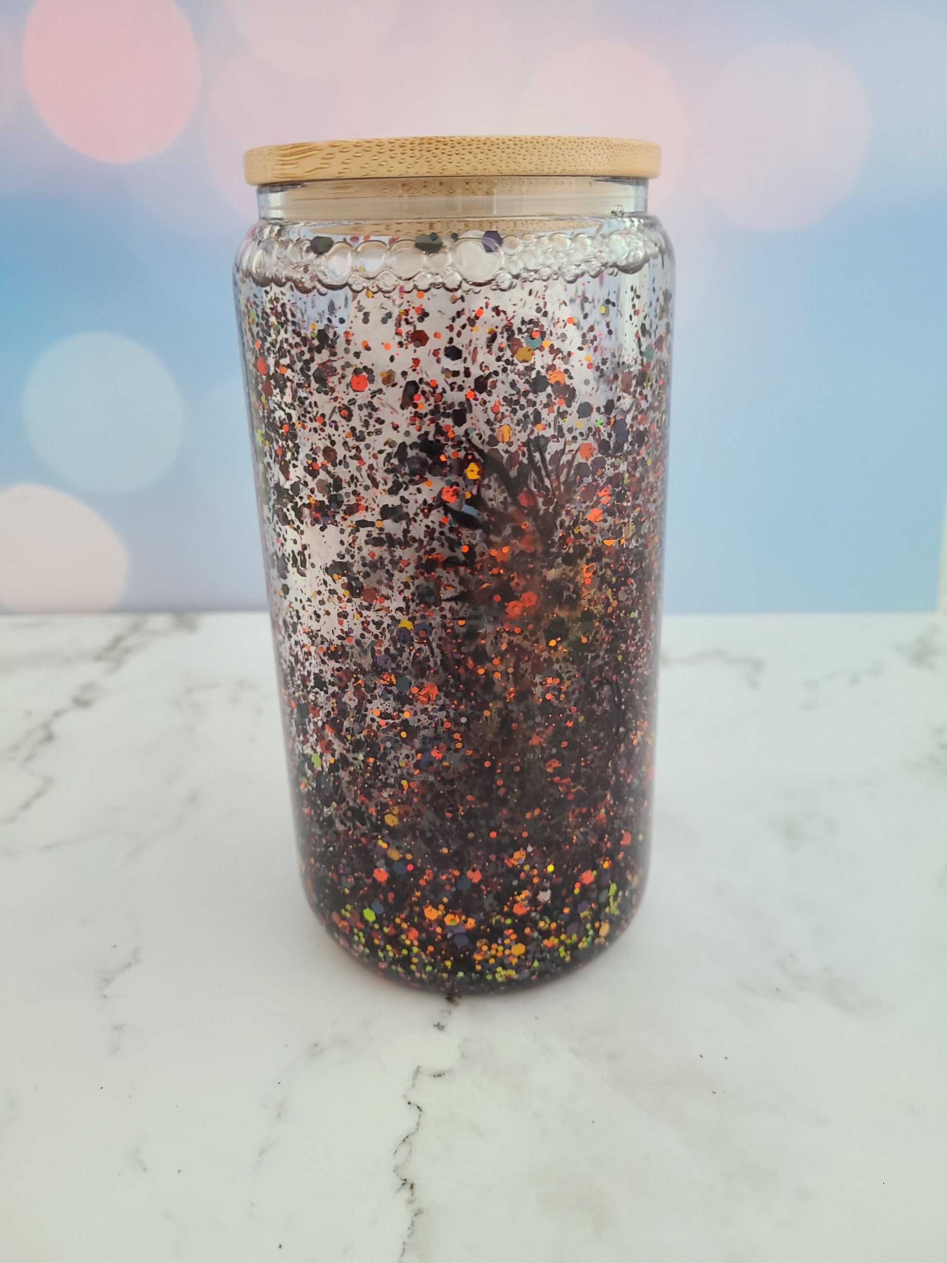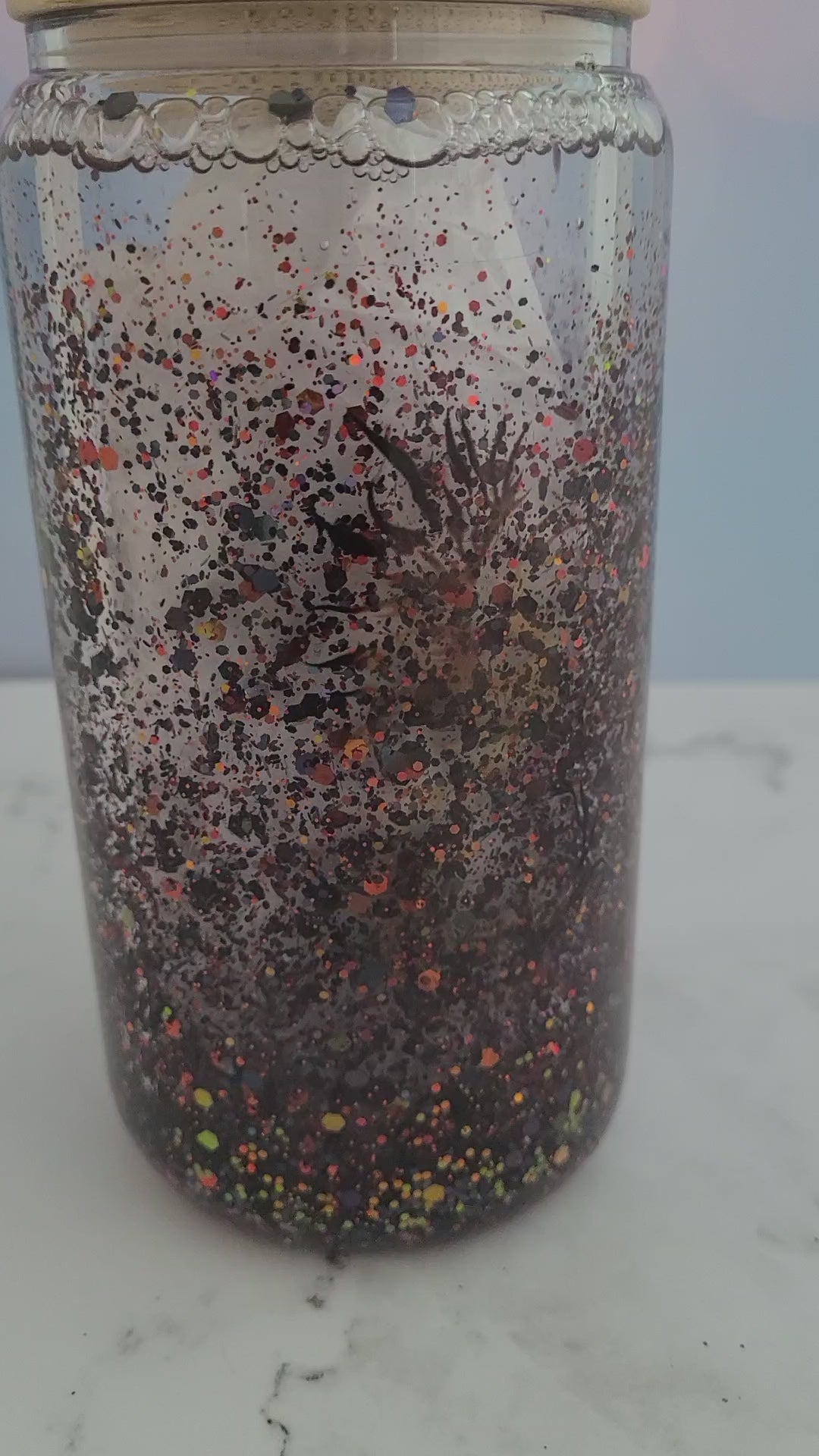 I have added a two phoenixes that reveal themselves when the glitter is settled and sealed with hyperion so it is 100% toxic free.