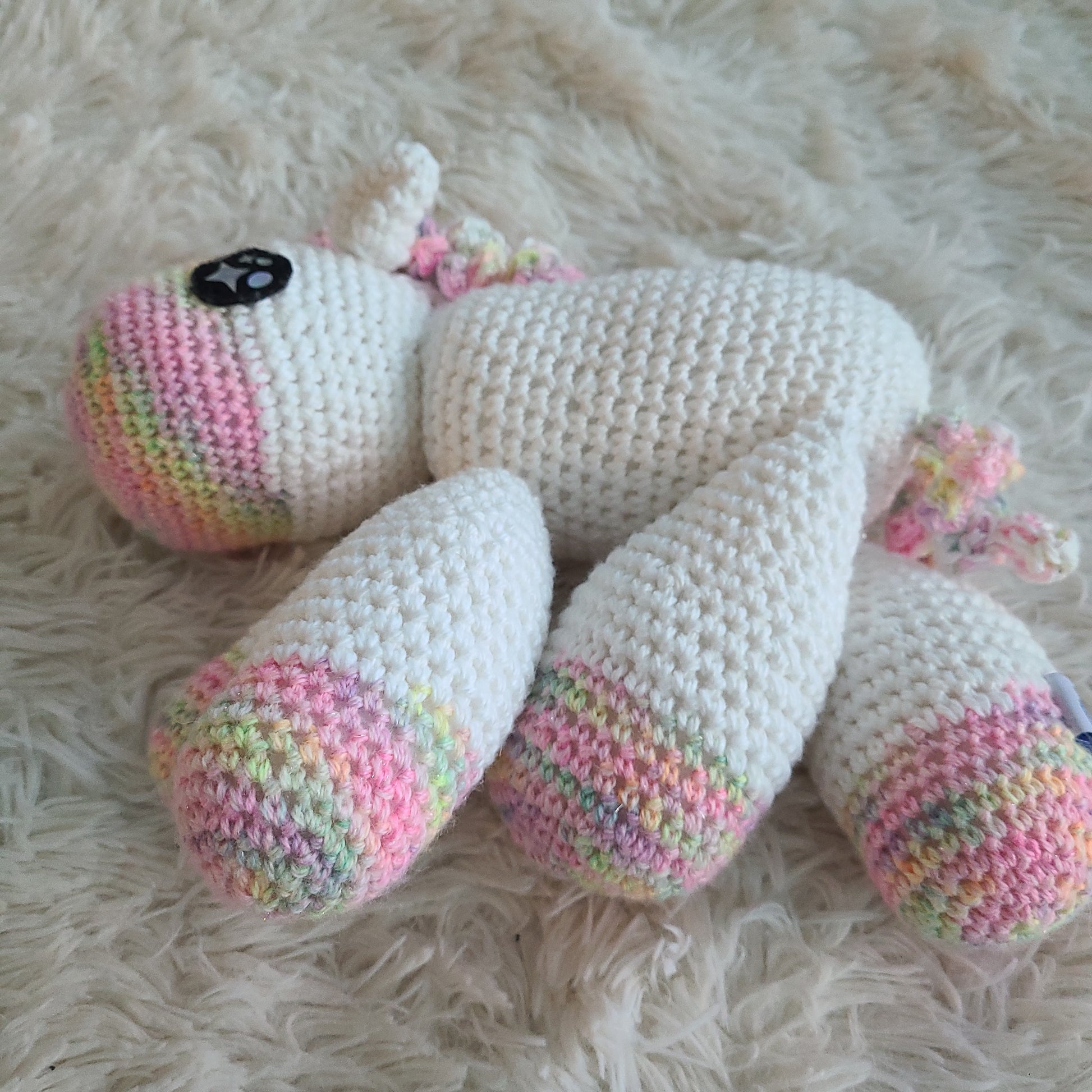 This is a very slightly version of Little Yarn Friend's unicorn pattern.