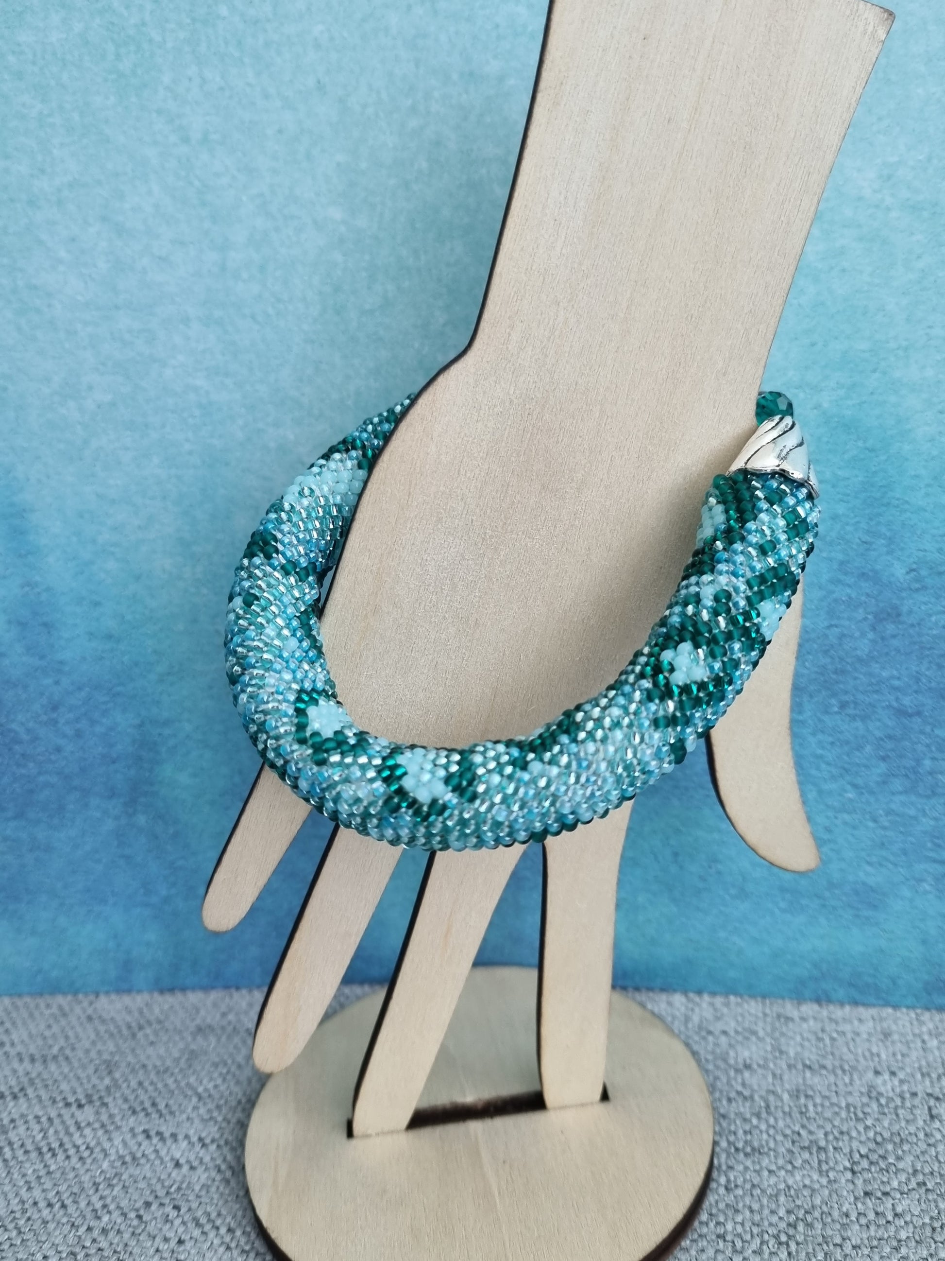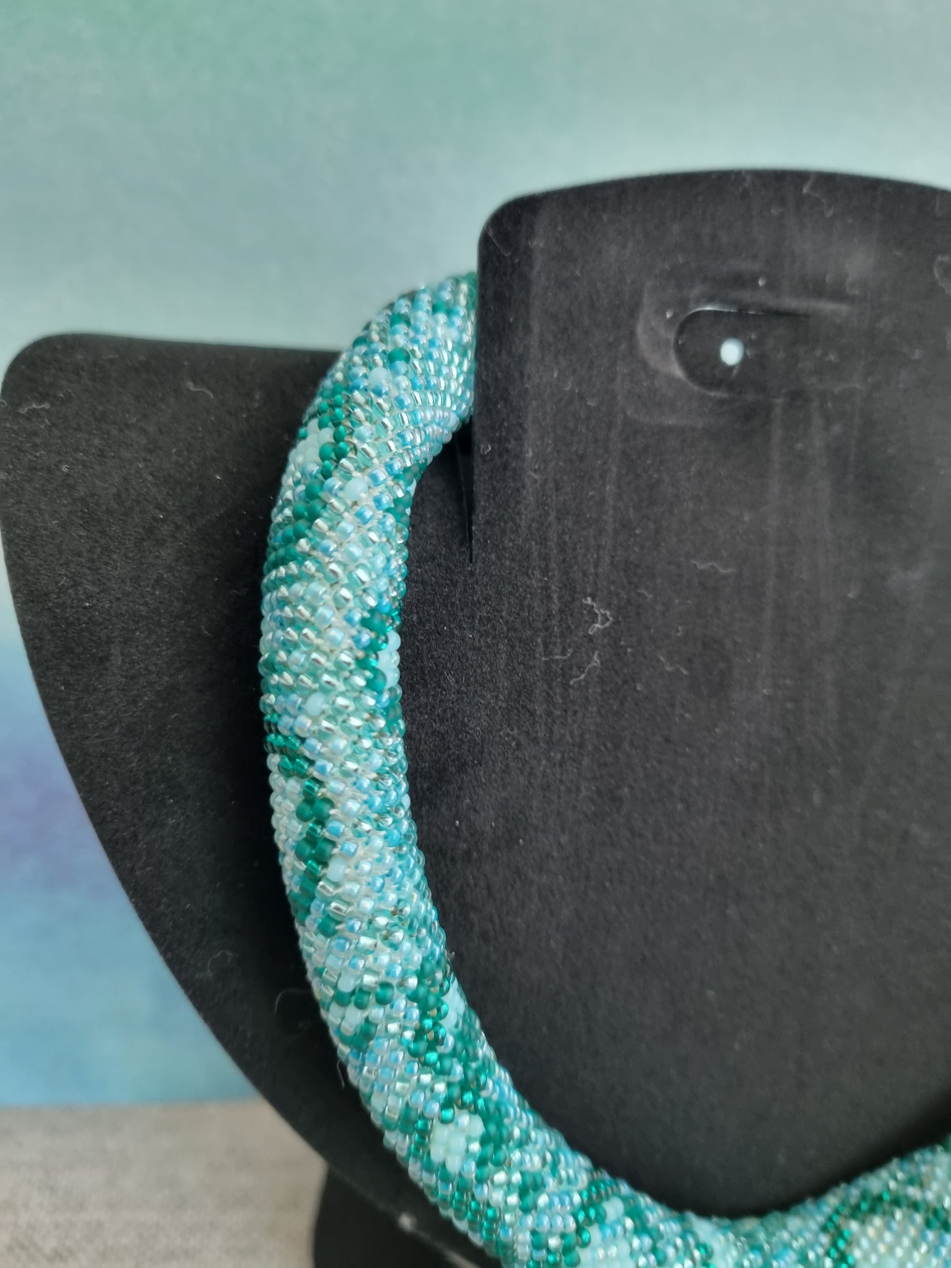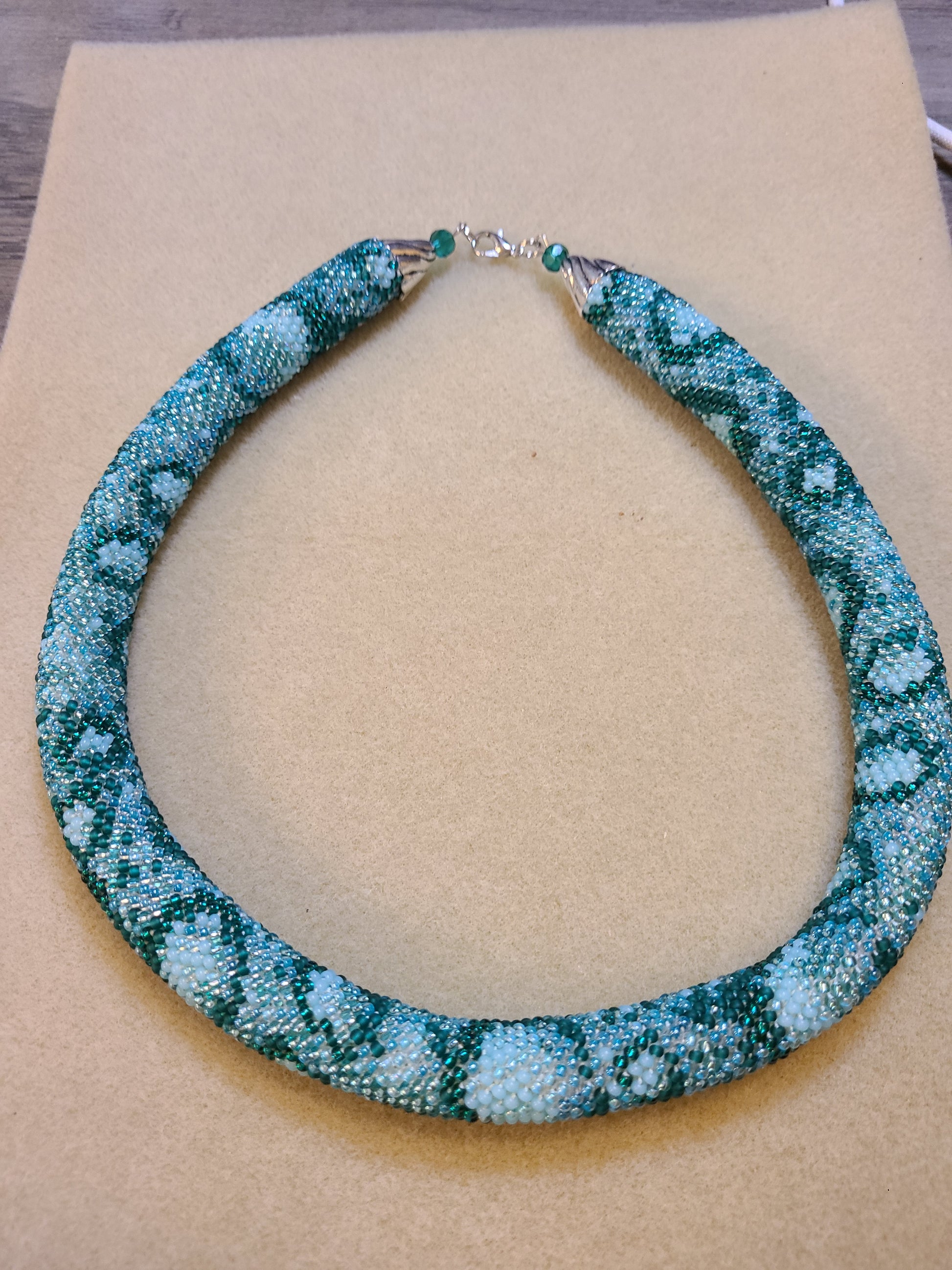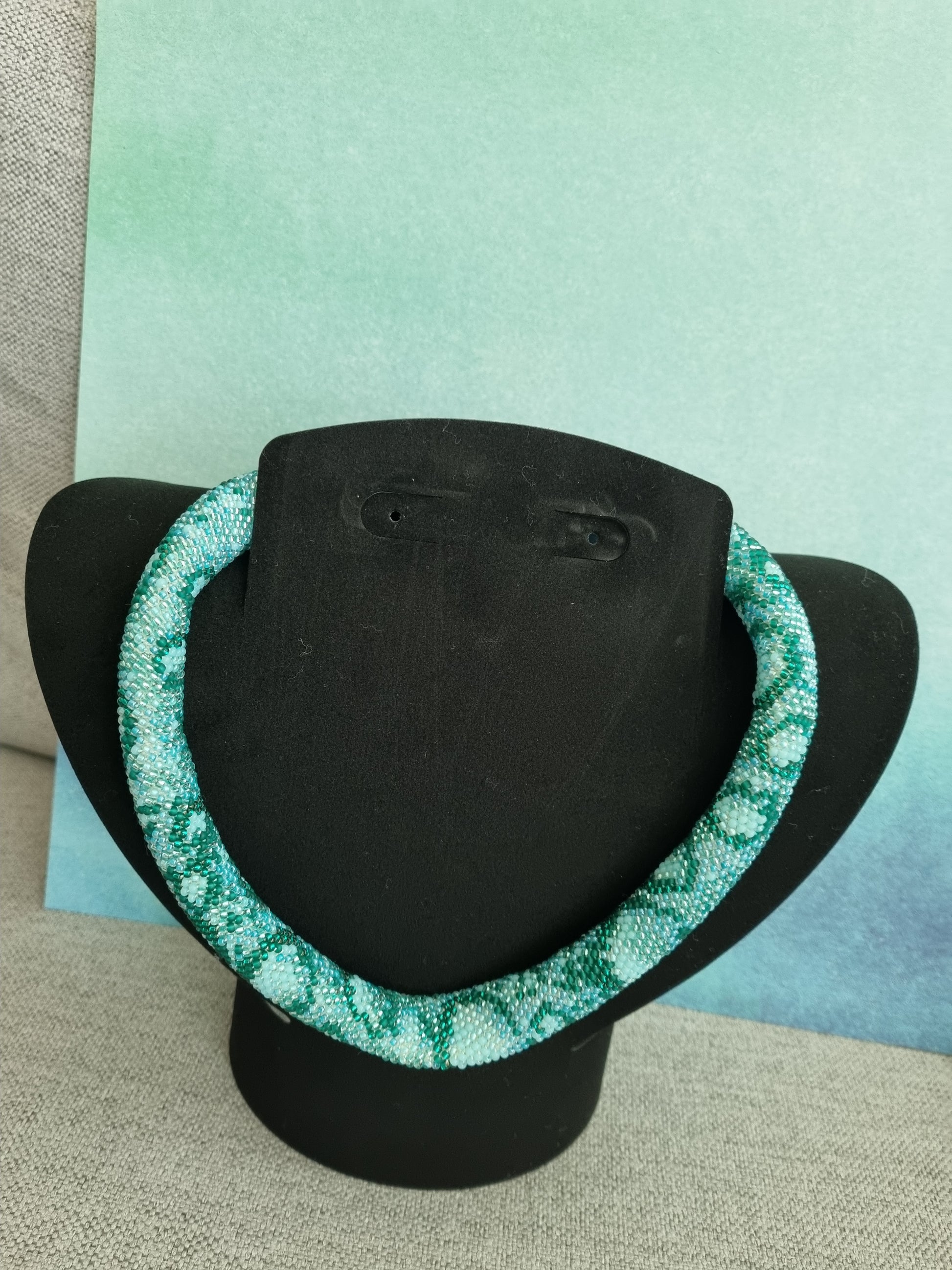This set is a beaded crochet design by Crazyyy Academy. The design is done with transparent seed beads. It's soft and flexible.