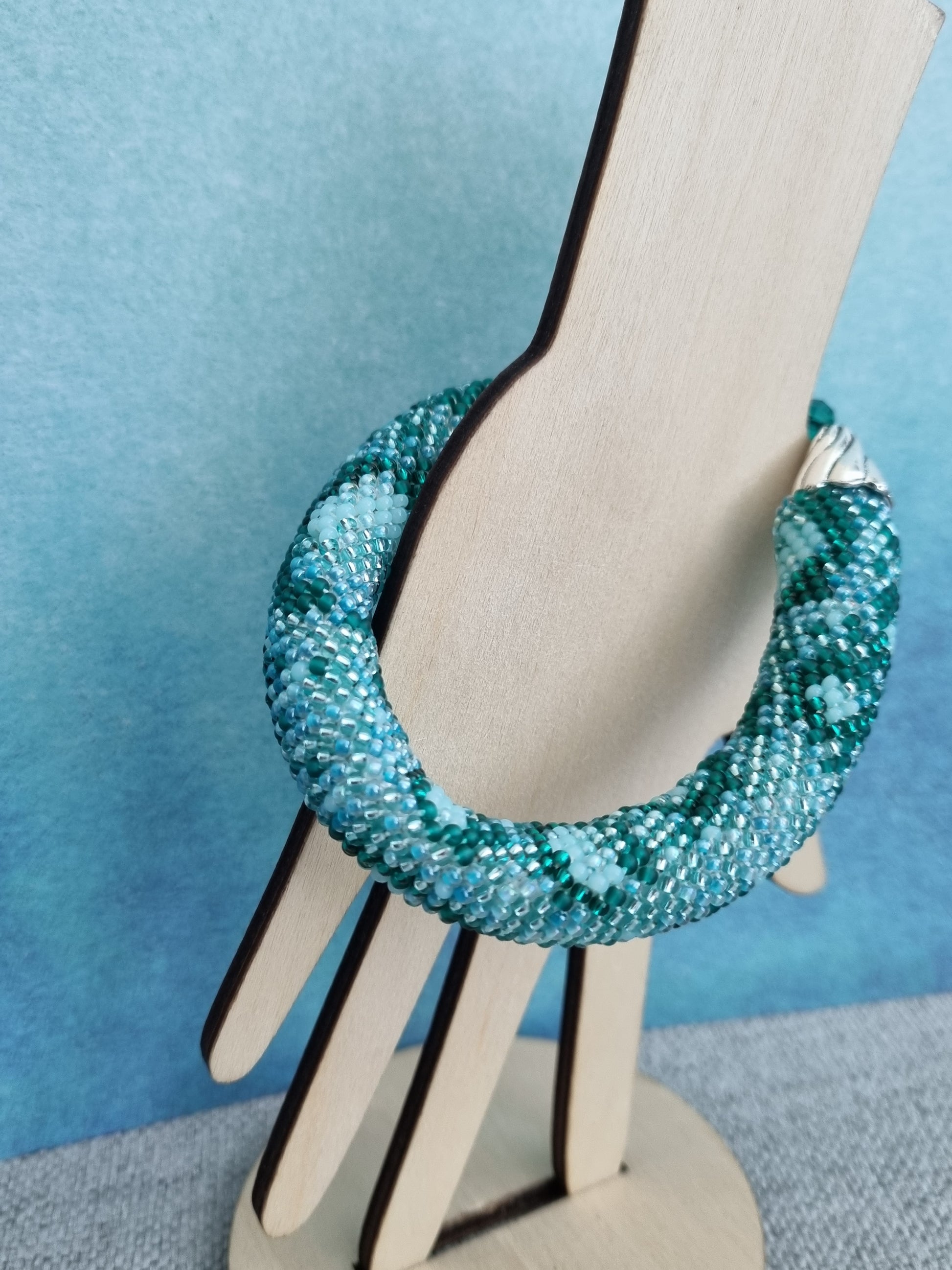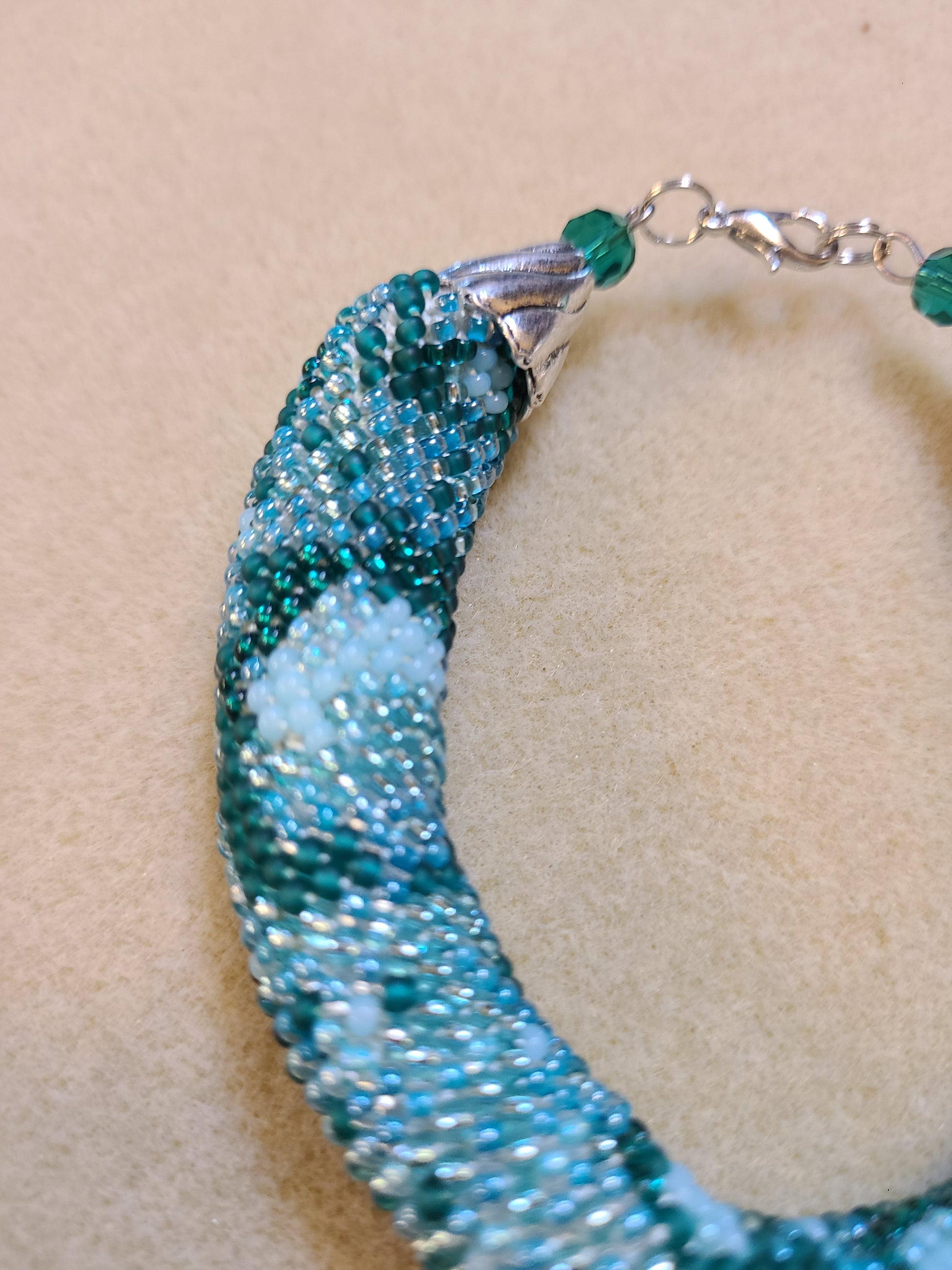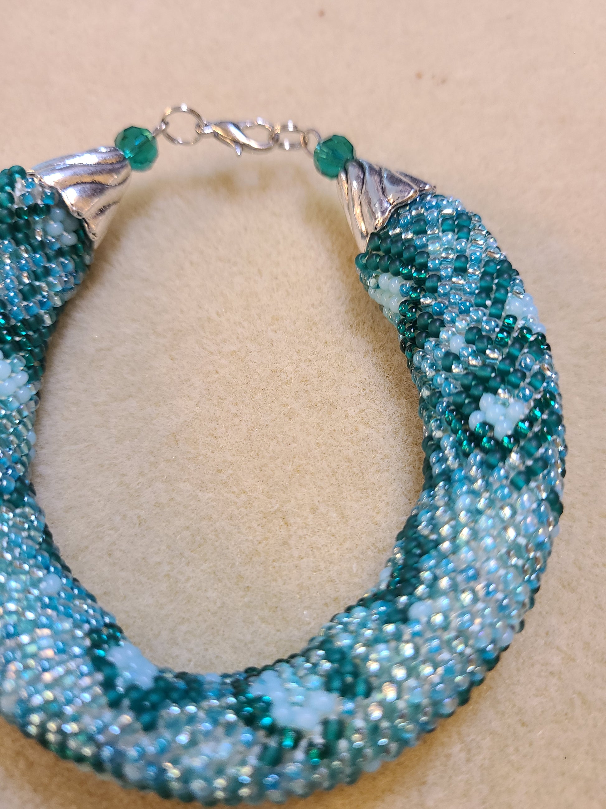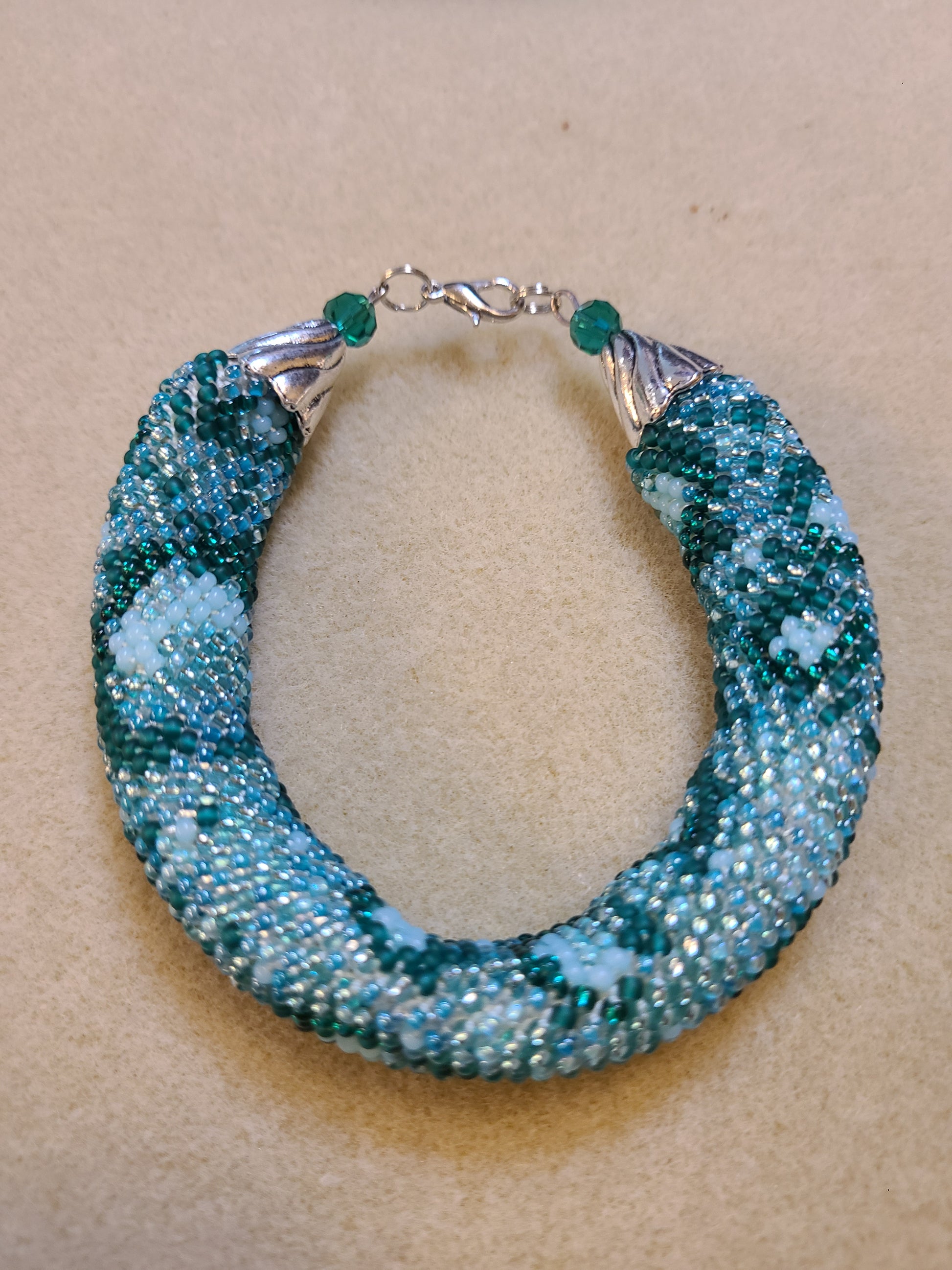 This set is a beaded crochet design by Crazyyy Academy. The design is done with transparent seed beads. It's soft and flexible.