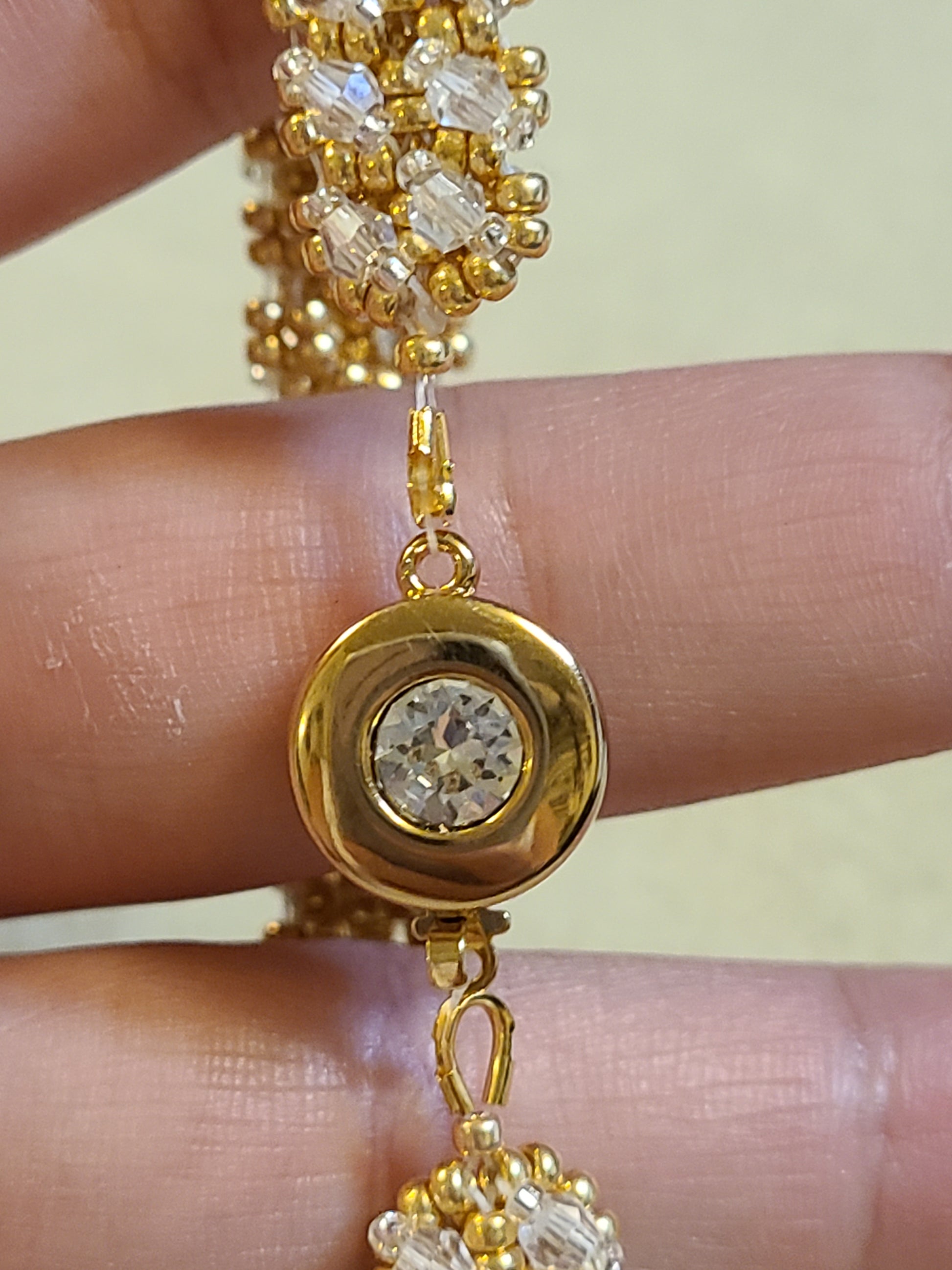 This is hand-beaded with seed beads and crystals. Elegant and classy